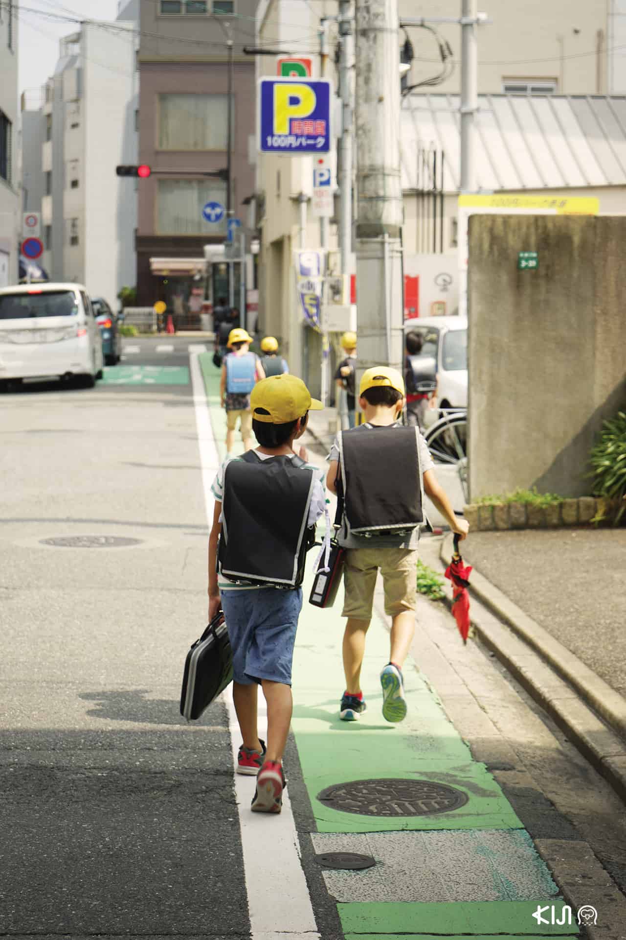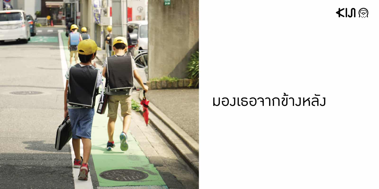 อย่างในภาพที่เห็นนี้ เป็นช็อตที่ฉันถ่ายเก็บไว้ตอนเหลือบไปเจอเด็กๆ ประถมฯ กำลังเดินกลับบ้านกันหลังเลิกเรียน เด็กนักเรียนในชุดไปรเวทเดินเรียงแถวในช่องทางเดินกันเรียบร้อยแต่ก็ดูอิสระอยู่ในที ทุกคนสวมหมวกสีเหลืองสดใสชวนสะดุดตาที่ทำให้มั่นใจว่าคนขับรถราจะมองเห็นได้จากระยะไกล ฉันผละจากร้านชาเจ้าอร่อยแห่งจังหวัดฟุกุโอกะออกมาสังเกตการณ์หน้าร้าน พลางยกกล้องขึ้นถ่ายภาพ การถ่ายภาพมุมกว้างจากข้างหลังนั้นห่างไกลจากคำว่าเสียมารยาทมากทีเดียว นั่นทำให้ฉันสบายใจและถ่ายภาพได้อย่างไร้กังวล กระเป๋าเป้ หมวก กระติกน้ำ และภาพด้านหลังจากเหล่าคนตัวเล็กที่เดินมุ่งไปข้างหน้านั้นเพียงพอแล้วสำหรับภาพนี้ ให้ความหมายของภาพครบถ้วนโดยไม่จำเป็นต้องเห็นหน้าของเด็กๆ เลย