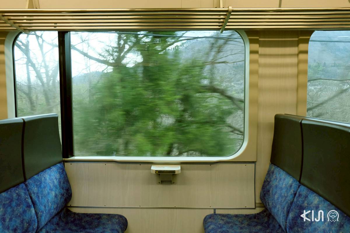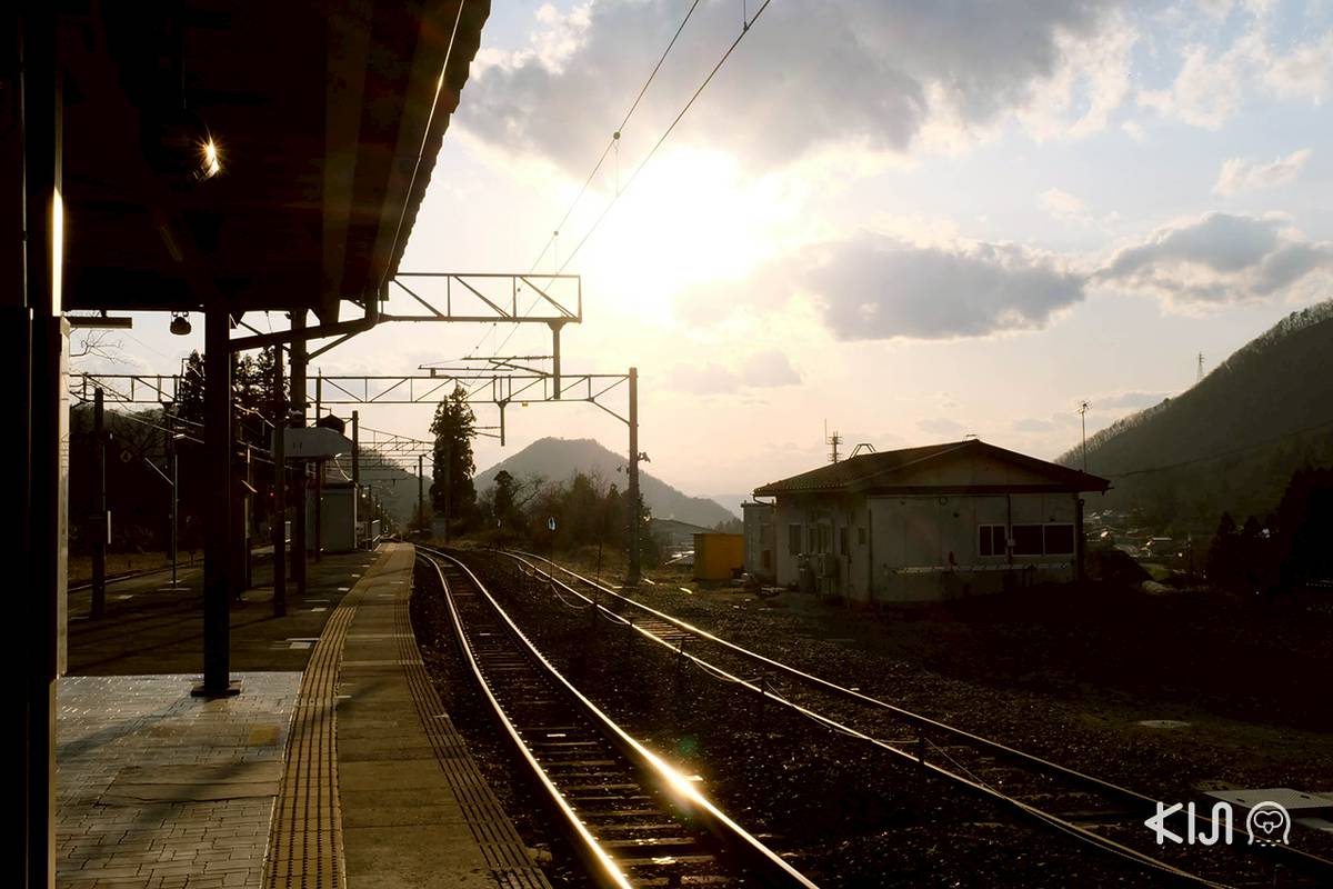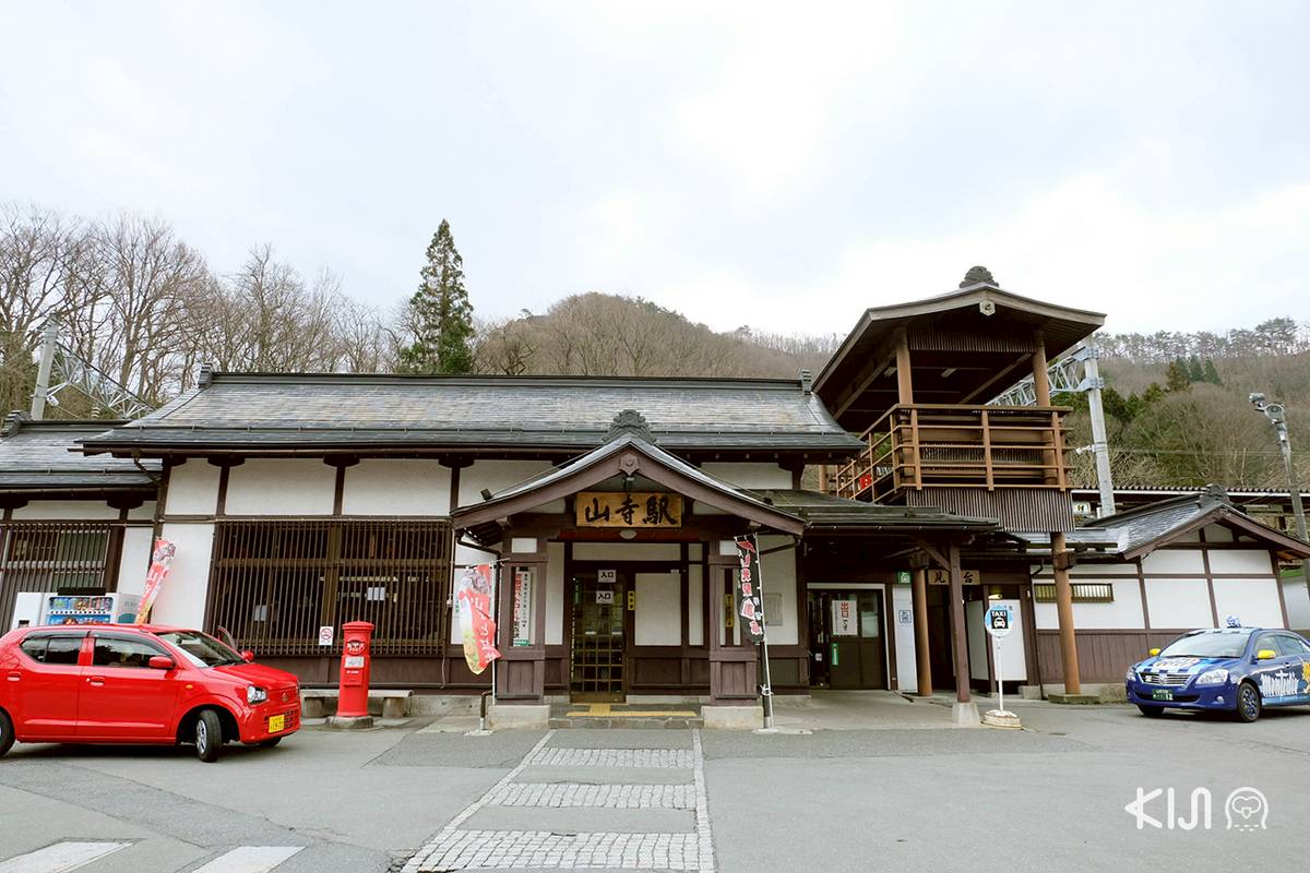 กินอิ่มแล้วนั่งรถไฟไปเที่ยวต่อ จุดหมายถัดไปของเราอยู่ที่สถานียามาเดระ (Yamadera Station)