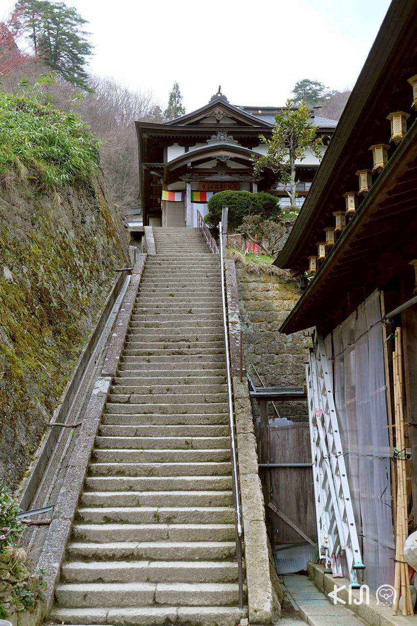 วัดนี้คนเรียกกันติดปากว่าวัดยามาเดระ แต่จริงๆ แล้วมีชื่อว่าวัดริชาคุจิ (Risshakuji Temple) เป็นวัดเก่าแก่มาก ถูกสร้างขึ้นตั้งแต่ปี ค.ศ. 860 มัตซึโอะ บะโช กวีชื่อดังของญี่ปุ่นยังเคยแต่งกลอนเกี่ยวกับที่นี่เอาไว้ ไต่ขึ้นมาถึงด้านบนแล้ว ขอให้ไปให้สุดถึง Godaido ซึ่งอยู่ด้านบนสุด วิวพาโนรามาจากบนนี้สวยจับใจจนลืมเหนื่อยไปเลย หุบเขา แม่น้ำ ชุมชน และอากาศบริสุทธิ์ ไม่ว่าจะมาฤดูไหน วิวจากที่นี่ก็สวยคุ้มค่าทุกหยาดเหงื่อ ก่อนลงอย่าลืมแวะเสี่ยงเซียมซีสุดวินเทจที่ Konjouin เพื่อเสริมสิริมงคล