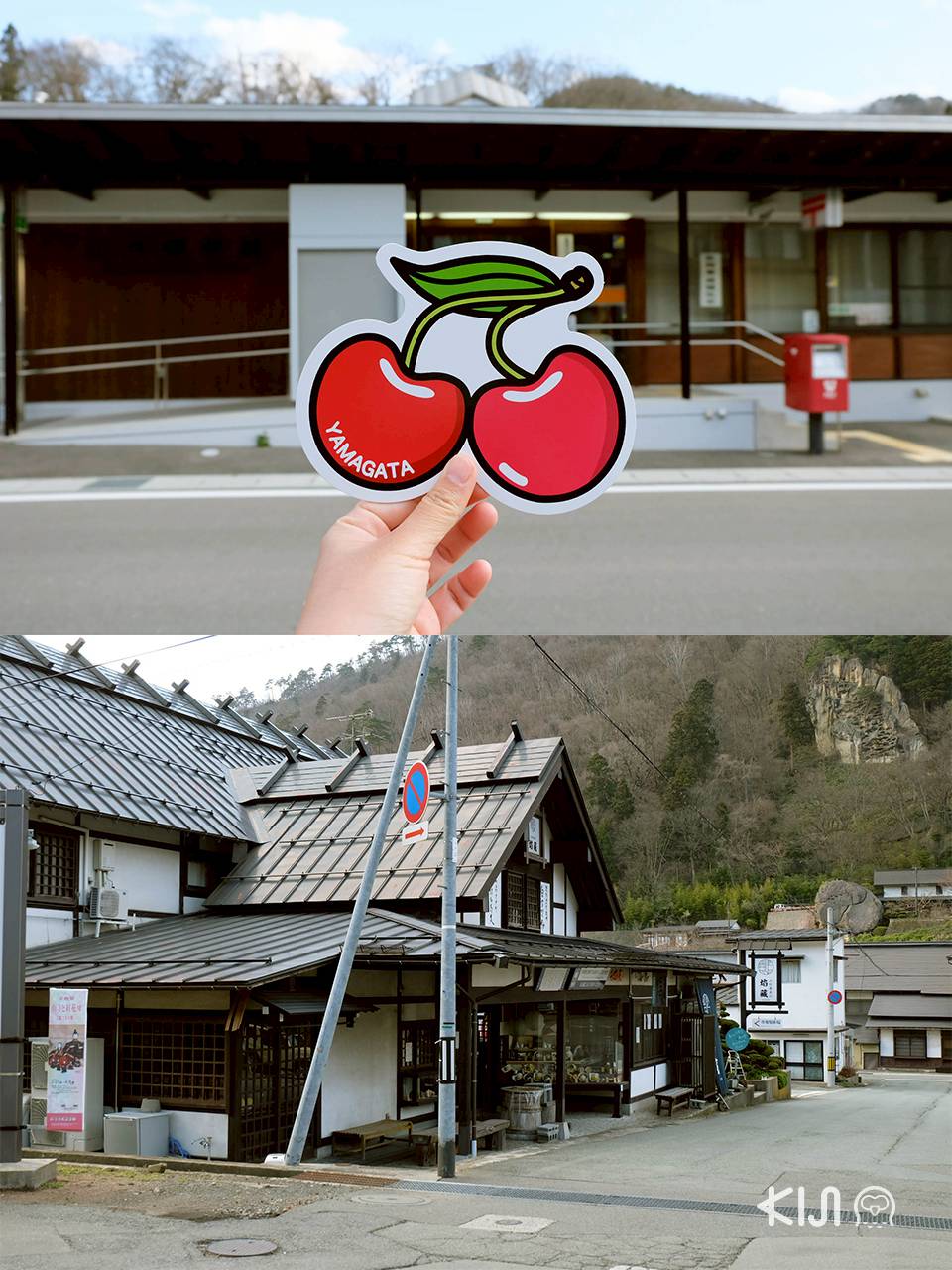 ยังเหลือเวลาอีกหน่อยก่อนรถไฟที่มุ่งหน้ากลับโตเกียวจะออก เราเลยแวะไปรษณีย์เพื่อซื้อโปสการ์ดลายพิเศษที่ขายเฉพาะท้องถิ่นนั้นๆ ส่วนมากจะเป็นลวดลายสินค้าโอท็อปยอดฮิตประจำจังหวัด, สถานที่ท่องเที่ยวชื่อดังหรือเทศกาลต่างๆ สำหรับจังหวัดยามากาตะ เราเลือกน้องเชอร์รี่กลับบ้านไปด้วยกัน เพราะน้ำผลไม้กระป๋องเมื่อกี๊อร่อยเกินคาดมากจริงๆ