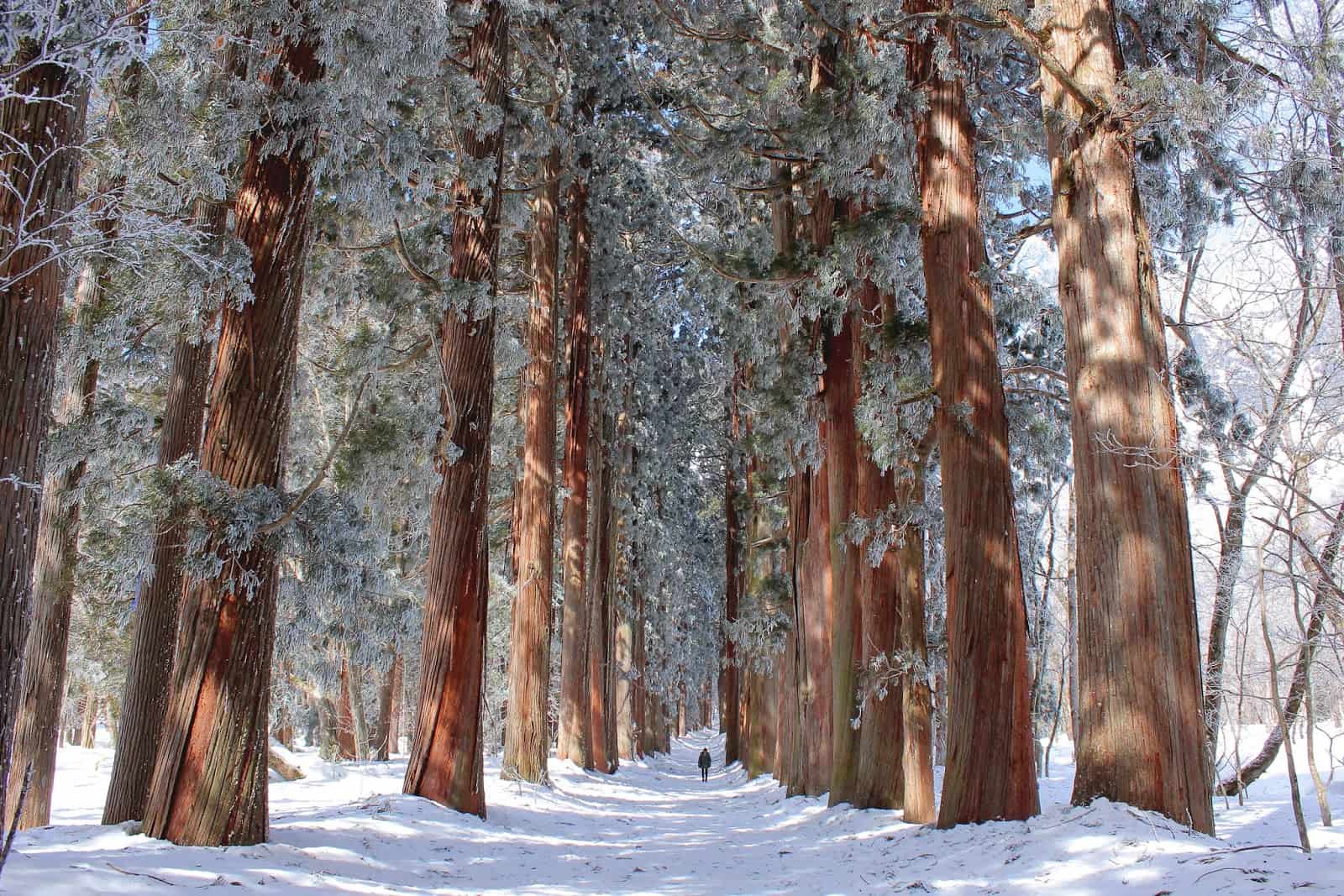ต้นไม้หลากหลายสายพันธุ์ผลัดใบเหลือเพียงกิ่งก้านในฤดูหนาว แต่ที่ โทกาคุชิ (Togakushi) ในจังหวัดนากาโน่มีทิวต้นสนซีดาร์ซึ่งเป็นต้นสนสายพันธุ์ขนาดใหญ่และไม่ได้ผลัดใบแม้อากาศจะเย็นจัด เกล็ดหิมะที่เกาะใบสนยิ่งทำให้บรรยากาศรอบๆ สวยอย่างน่าพิศวง เหมาะแก่การใส่รองเท้าลุยหิมะเดินชมเป็นที่สุด