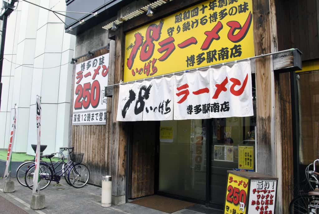 เมื่อก่อนญี่ปุ่นมีการเรียกเก็บภาษีเพียง 3% จึงมิใช่เรื่องแปลกหากจะหากินราเมนที่ฟุกุโอกะได้ทั่วไปในราคาต่ำกว่า 500 เยน แต่พอขึ้นภาษีเป็น 8% ก็แทบจะหาร้านที่ขายราเมนต่ำกว่า 600 เยนไม่เจอแล้ว กระนั้นก็ตามร้านอิปปาจิราเมน (18 Ramen) สาขาฮากาตะเอกิมินามิ (Hakataekiminami-ten) ก็ยังขายราเมนในราคา 250 เยน! ใช่แล้วนี่คือราเมนที่ราคาไม่ถึง 80 บาท