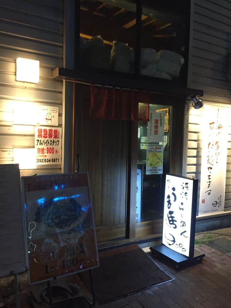 แนะนำมาหลายร้าน จะลืมร้านนี้ไม่ได้จริงๆ ที่นี่ก็คืออุมะอุมะ (Uma Uma) สาขากิออน (Gion-ten) ซึ่งเดินจากสถานีกิออน (Gion Station) เพียง 1 นาที แม้ว่าจะมีสาขาในไทยด้วย แต่เราอยากให้ไปลองรับประทานราเมนท่ามกลางบรรยากาศบ้านๆ ของเขตฮากาตะก็จะได้อรรถรสไปอีกแบบ สามารถอ่านรีวิวร้านอุมะอุมะสาขาในไทยได้ที่นี่