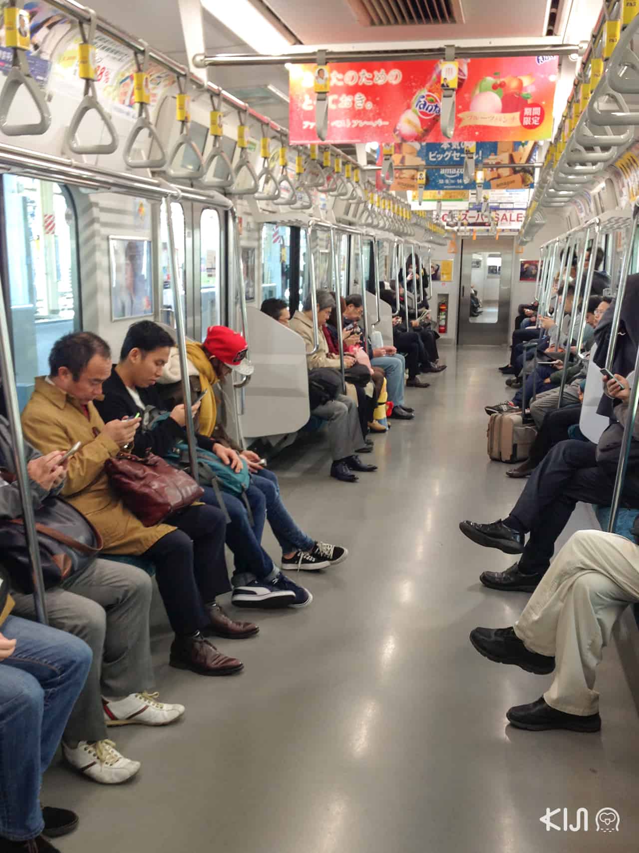 บนรถไฟญี่ปุ่น (ยกเว้นหลัง4ทุ่ม) มีบรรยากาศที่เป็นเอกลักษณ์เหลือเกิน เพราะมันเงียบมาก ไม่มีใครพูดคุยเสียงดัง ไม่มีคนคุยโทรศัพท์ โฆษณาบนจอทีวีก็ไร้เสียง นอกจากนี้ยังมีป้ายติดประกาศ ขอความร่วมมือให้ผู้โดยสารงดใช้โทรศัพท์มือถืออันทำให้เกิดเสียงนั่นเอง