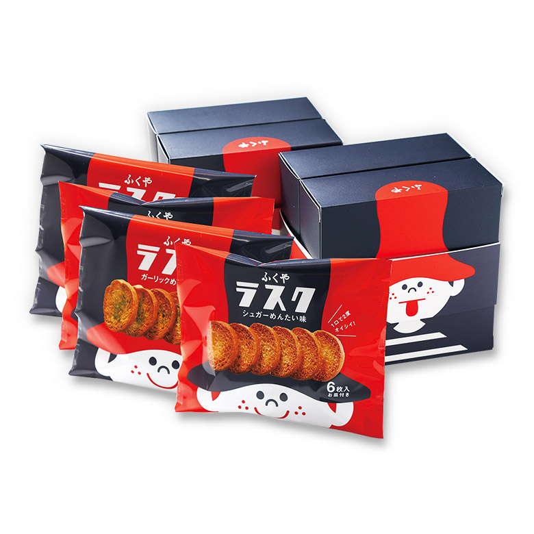 “Fukuya Rusk Mentai Flavour 2 Box Set” คือขนมปังรัสค์ หรือขนมปังอบกรอบขนาดพอดีคำที่มี 2 รสชาติ ได้แก่ “รสชูการ์เมนไท”เเละ “รสกระเทียมเมนไท” ซึ่งรสชูการ์เมนไทก็คือขนมปังอบกรอบรสเมนไทโกะโรยด้วยน้ำตาล เป็นรสชาติที่เราจะได้ความหวานของน้ำตาลและความเผ็ดเล็กน้อยของเมนไทโกะ สำหรับรสกระเทียมเมนไท เราจะได้กลิ่นหอมอ่อนๆ ของกระเทียมเเละพาร์สลีย์ที่โรยหน้าขนมปัง