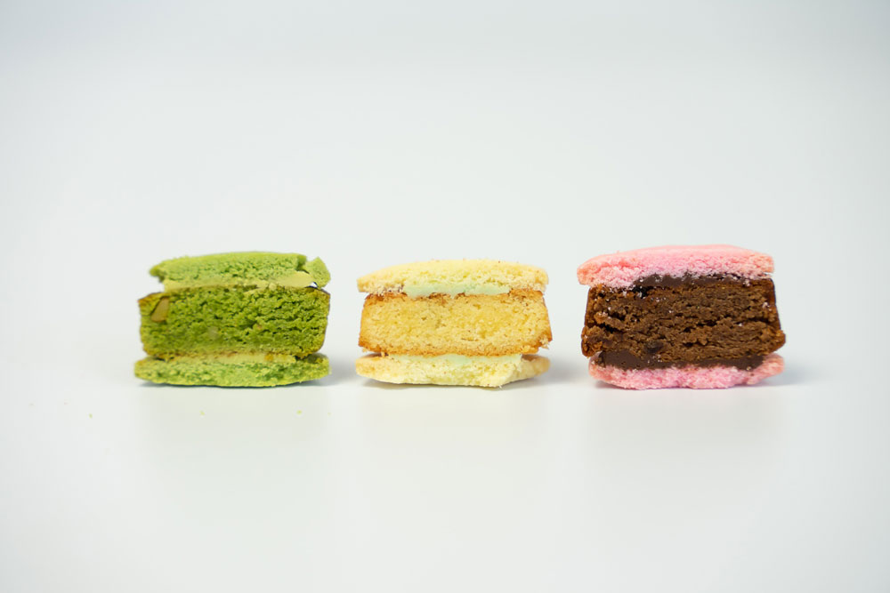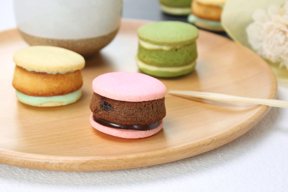 ”แซนด์วิชเค้กถั่ว” เป็นขนมหวานหน้าตาคล้ายมาการอง ด้านในเป็นเค้กถั่วบดรสหวาน ทำจากถั่วบดนวดในแป้งและสอดไส้ครีมเข้มข้นตรงกลาง ประกบด้วยคุกกี้แซนวิชหลากสี ในหนึ่งกล่องจะมีแซนด์วิชเค้กถั่วแดงทั้งหมด 5 ชิ้น 3 รสชาติด้วยกันคือ สตรอว์เบอร์รี น้ำผึ้ง และมัทฉะ