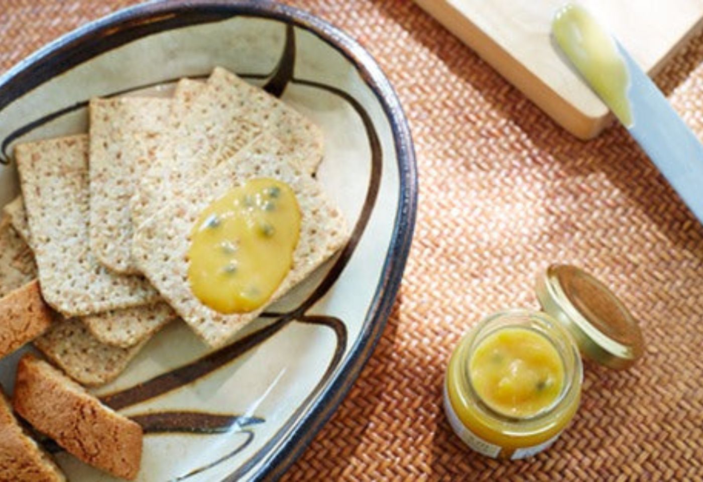 เนยสเปรดเสาวรส ทำมาจากเสาวรสที่มีความหวานโดดเด่นและมีรสเปรี้ยวพอดี เลือกใช้เมล็ดเสาวรสทั้งลูก เมื่อเรากินเข้าไปจะรู้สึกสดชื่นเเละได้เพลิดเพลินกับการเคี้ยวเมล็ดเสาวรสที่มีเนื้อสัมผัสกรุบๆ ในปากไปด้วย