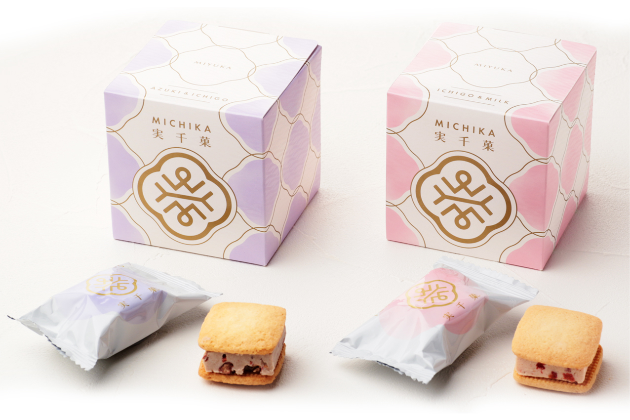 “มิชิกะ” เป็นคุกกี้แซนวิชที่ผสมผสานความเป็นญี่ปุ่นและตะวันตกให้เข้ากับธีมสตรอว์เบอร์รี สีม่วงอ่อน (บน) จะเป็นรสชาติ ”Azuki & Ichigo” ซึ่งได้รับแรงบันดาลใจจากไดฟุกุสตรอว์เบอร์รี ภายในสอดไส้ช็อกโกแลตที่ผสมถั่วแดงอะซึกิแห้งและสตรอว์เบอร์รี ความหวานของเมล็ดถั่วแดงช่วยเพิ่มกลิ่นหอมให้กับคุ๊กกี้ได้ดี สำหรับสีชมพู (ล่าง) คือรสชาติ “Ichigo & Milk” ซึ่งได้รับแรงบันดาลใจจากชอร์ตเค้ก จะมีรสชาติแบบตะวันตก ข้างในจะผสมสตรอว์เบอร์รีฟรีซดรายเข้ากับไวท์ช็อกโกแลต รสเปรี้ยวของสตรอว์เบอร์รีทำให้กินเเล้วรู้สึกสดชื่น