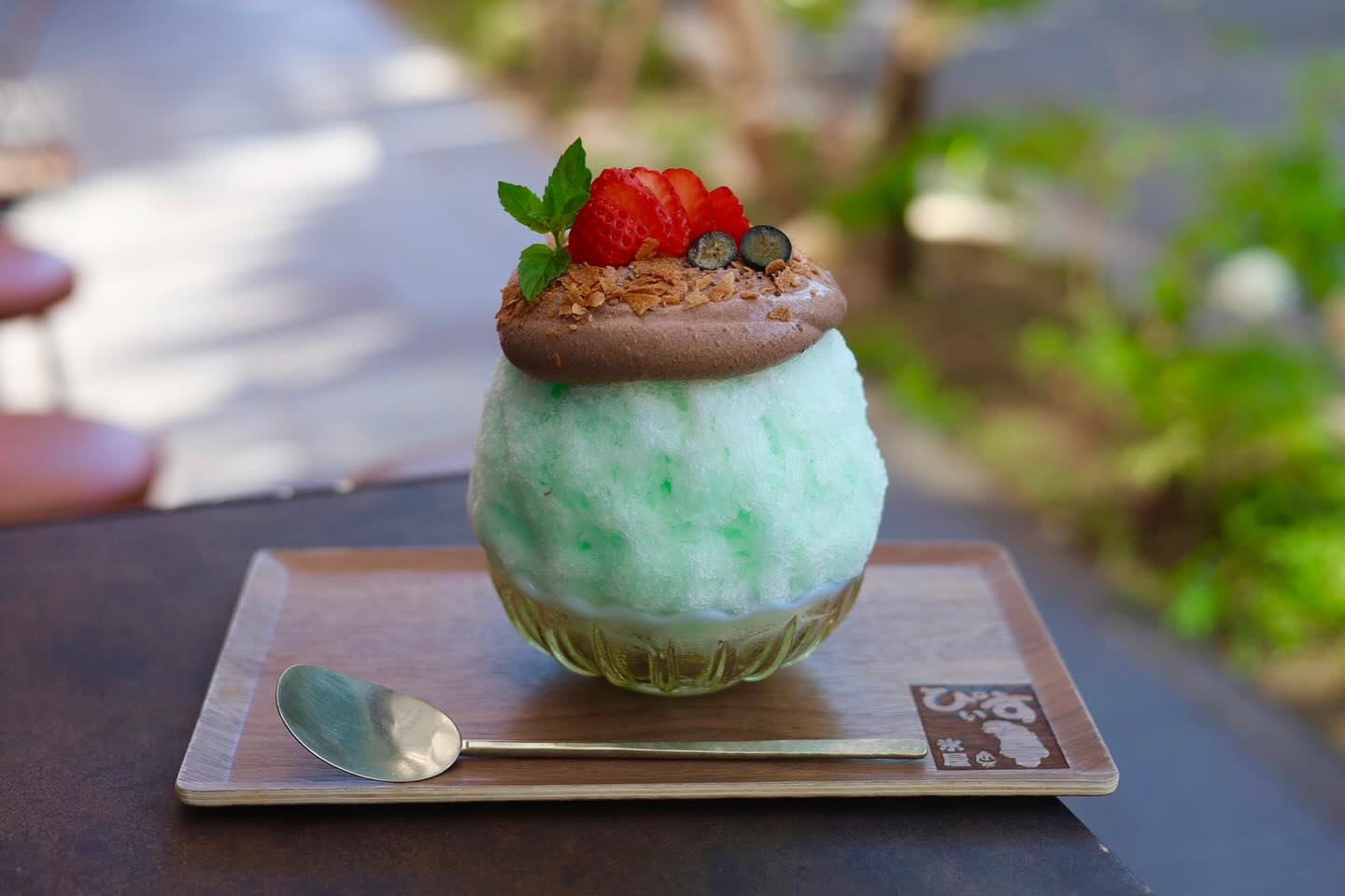 ร้านค้าและคาเฟ่ในกินซ่าแห่งนี้นอกจากจะเลื่องลือในเรื่องการจำหน่ายผลิตภัณฑ์น้ำเชื่อมขิงและผลไม้แปรรูปมาเป็นเวลานานเเล้ว เมนูน้ำแข็งไสของทางร้านเองก็เป็นที่ชื่นชอบเช่นกันเคล็ดลับความอร่อยของร้านนี้คือ การนำขิงมาผสมผสานในเมนูน้ำแข็งไสด้วยนั่นเอง โดยแต่ละเมนูก็จะมีการราดด้วยนมขิงโฮมเมด เสิร์ฟพร้อมกับแยม (กีวี สตรอว์เบอร์รี หรือขิงส้ม) หรือโฟม Espuma ซึ่งก็จะเปลี่ยนไปตามแต่ละฤดูกาล