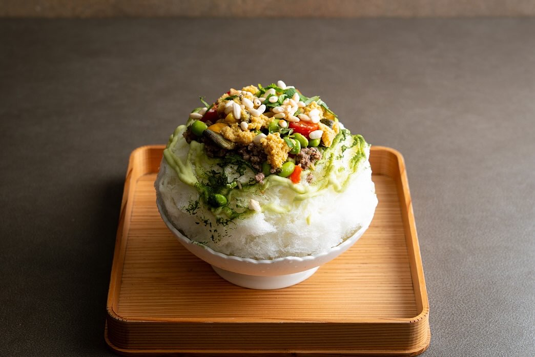 แน่นอนว่าพอเป็นเมนูนำแข็งไส ทางร้านเองก็ได้นำผักมาเป็นหนึ่งในส่วนผสมด้วย เช่น อะโวคาโดคาราเมล มะเขือเทศ มัทฉะผักโขม เซเลอรี่ และอื่นๆ อีกมากมาย