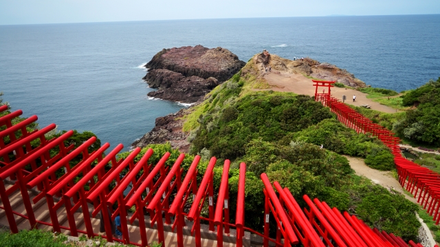 เกาะที่มักเป็นตัวเลือกแรก ๆ ในการถ่ายทำโฆษณาและซีรีส์ “เกาะสึโนะชิมะ (Tsunoshima Island)” เกาะแห่งนี้มีทัศนียภาพที่สวยงามทั้งหาดทรายขาวและน้ำทะเลที่ใสเป็นอันดับต้น ๆ ของประเทศญี่ปุ่น อีกทั้งสะพานสึโนะชิมะโอฮาชิ (Tsunoshima Ohashi Bridge) สะพานที่จะพาเราไปชื่นชมกับทิวทัศน์อันสวยงามของเกาะสึโนะชิมะ นอกจากสะพานนี้แล้วที่นี่ก็ยังมีแลนด์มาร์คสำคัญที่ต้องไปให้ได้นั่นก็คือ “ศาลเจ้าโมโตโนสุมิ อินาริ (Motonosumi Inari Shrine)” ซึ่งระหว่างทางที่เราเดินจะมีเสาโทริอิทอดยาวไปถึงตัวศาลเจ้าอย่างสวยงาม ใครอยากลองสัมผัสบรรยากาศแปลกใหม่ของศาลเจ้าริมทะเลล่ะก็ต้องที่นี่เลย