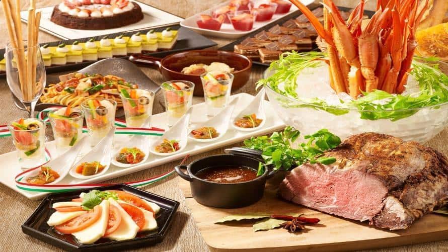 อีกหนึ่งภัตตาคารบุฟเฟ่ต์ในโรงแรม Tokyo Prince Hotel หนึ่งในเมนูที่รับประทานได้ไม่อั้น แน่นอนว่าเป็นขาปูแช่แข็งที่ปักไว้บนชามน้ำแข็งดูยิ่งใหญ่น่าประทับใจ นอกจากนี้ยังมีอาหารและของหวานสไตล์อิตาเลียนมากมายไปจนถึงอาหารนานาชาติอื่นๆ ให้เลือกอิ่มจนแทบจะเลือกไม่ถูกว่าจะหยิบอะไรก่อน ทั้งหมดที่กล่าวมาจ่ายเพียงคนละ 3,200 เยน