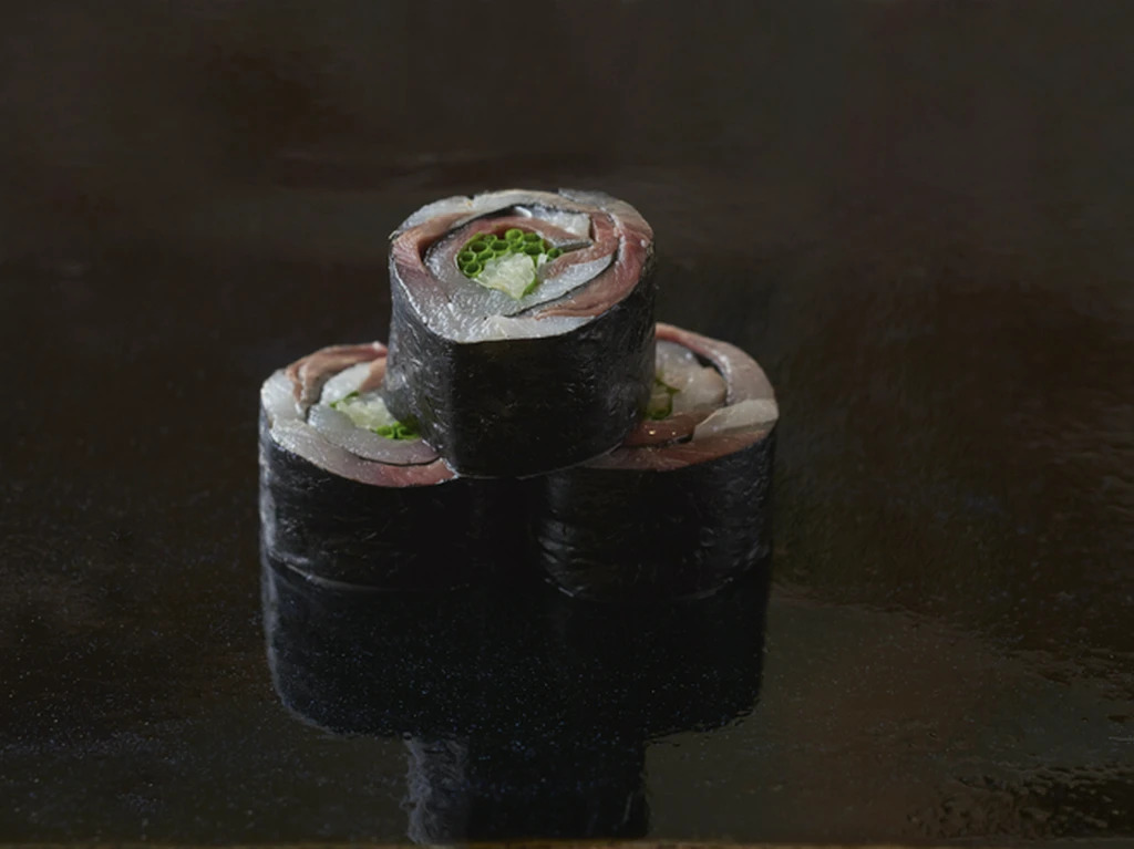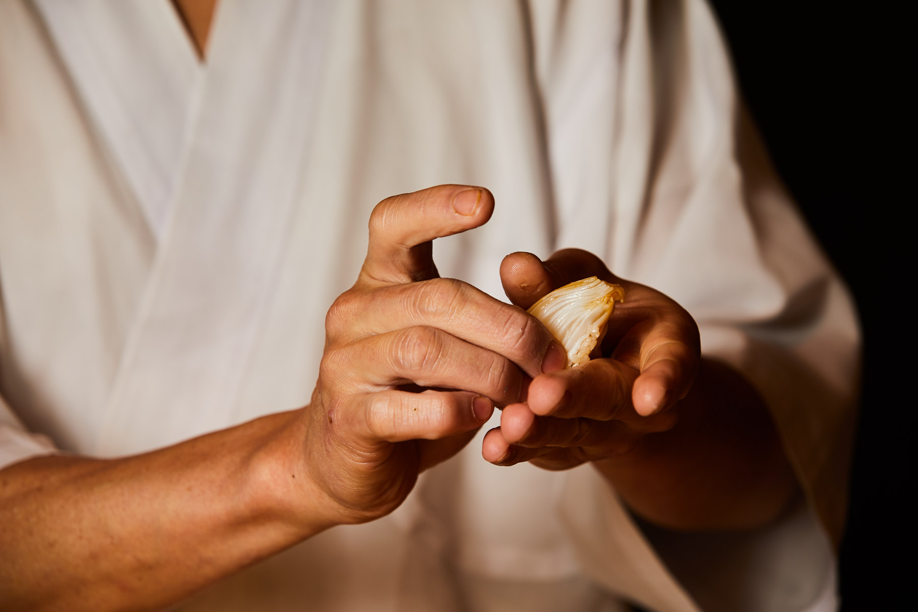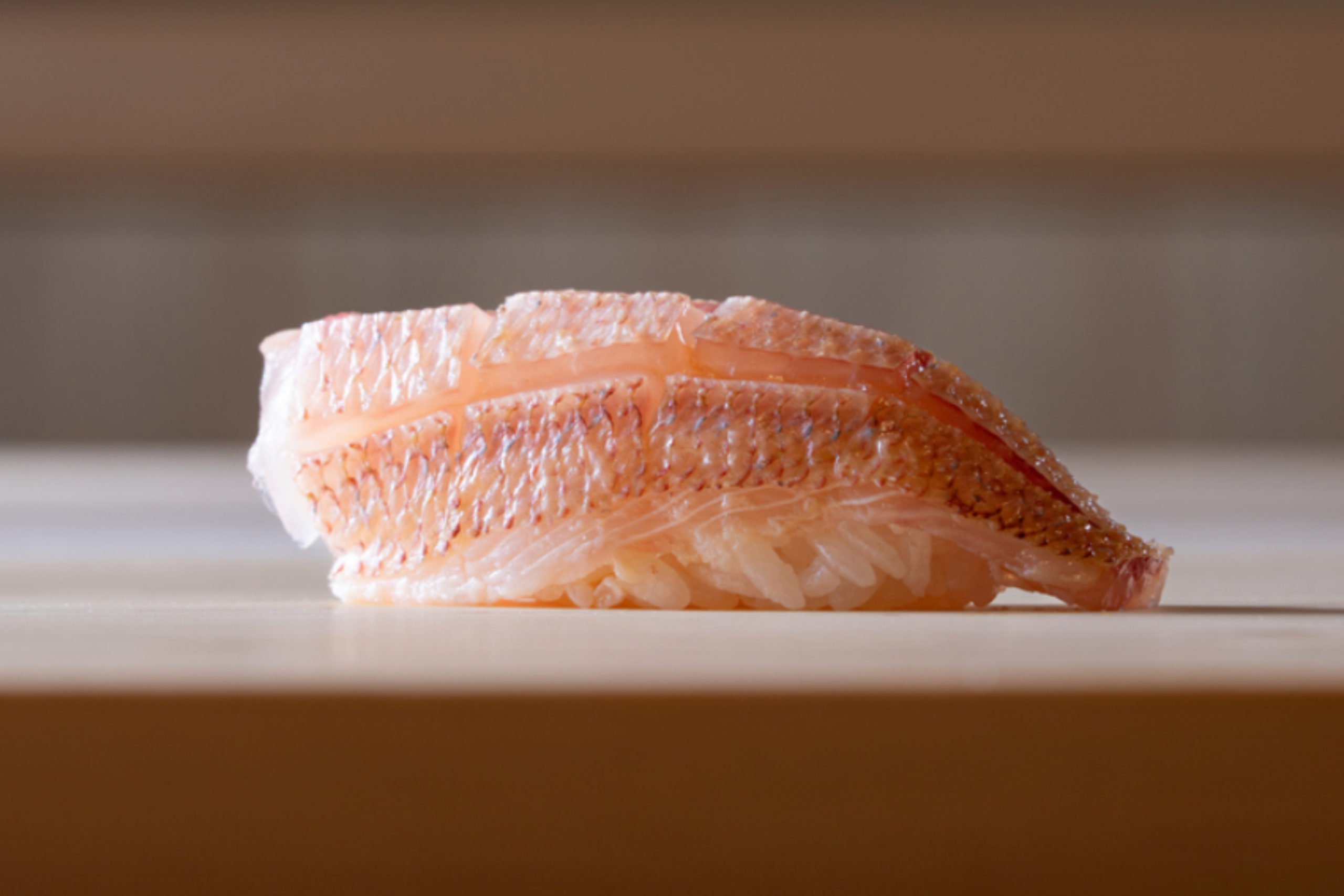 นอกจากนั้นเชฟยังใช้เทคนิคผสมน้ำส้มสายชูถึง 4 ชนิด เพื่อให้ได้รสสัมผัสที่มีมิติ มีความเปรี้ยวนำแต่กลมกล่อม ข้าวแต่ละเมล็ดมีความนุ่มหนึบและเสิร์ฟในอุณหภูมิที่สูงเล็กน้อยเพื่อให้เข้ากับหน้าปลาที่มีไขมันสูง บวกกับเทคนิคการปั้นแบบ “Airy” หรือมีอากาศแทรกอยู่ข้างใน เมื่อทานเข้าไปไขมันปลาจะค่อย ๆ ละลายและกระจายไปทั่วปากพร้อมกับข้าวอย่างลงตัว