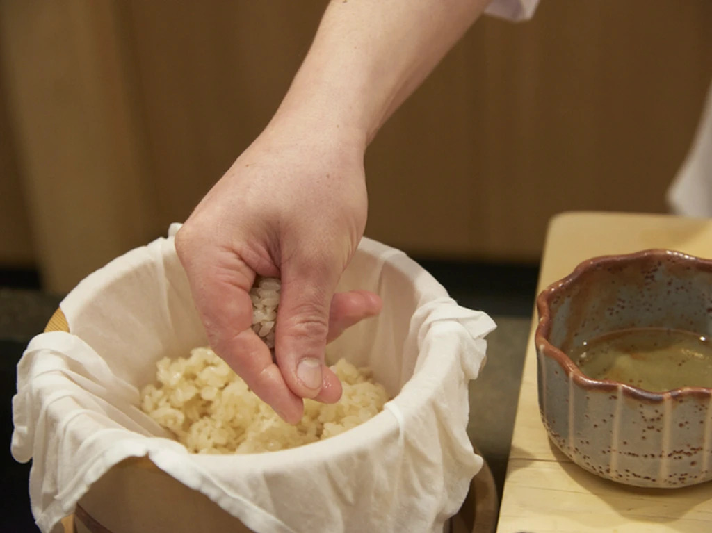 ความพิถีพิถันนี้รวมไปถึงการเลือก “ข้าว” โดยเชฟจะใช้ข้าวเมล็ดใหญ่ที่ผ่านการบ่มมาอย่างดี ปรุงรสด้วยน้ำส้มสายชูแดงและเกลือเท่านั้น ที่สำคัญคือการควบคุมอุณหภูมิข้าวให้สัมพันธ์กับหน้าซูชิแต่ละชนิดแบบคำต่อคำ เพื่อให้เกิดรสสัมผัสที่กลมกล่อมและสมดุลที่สุด