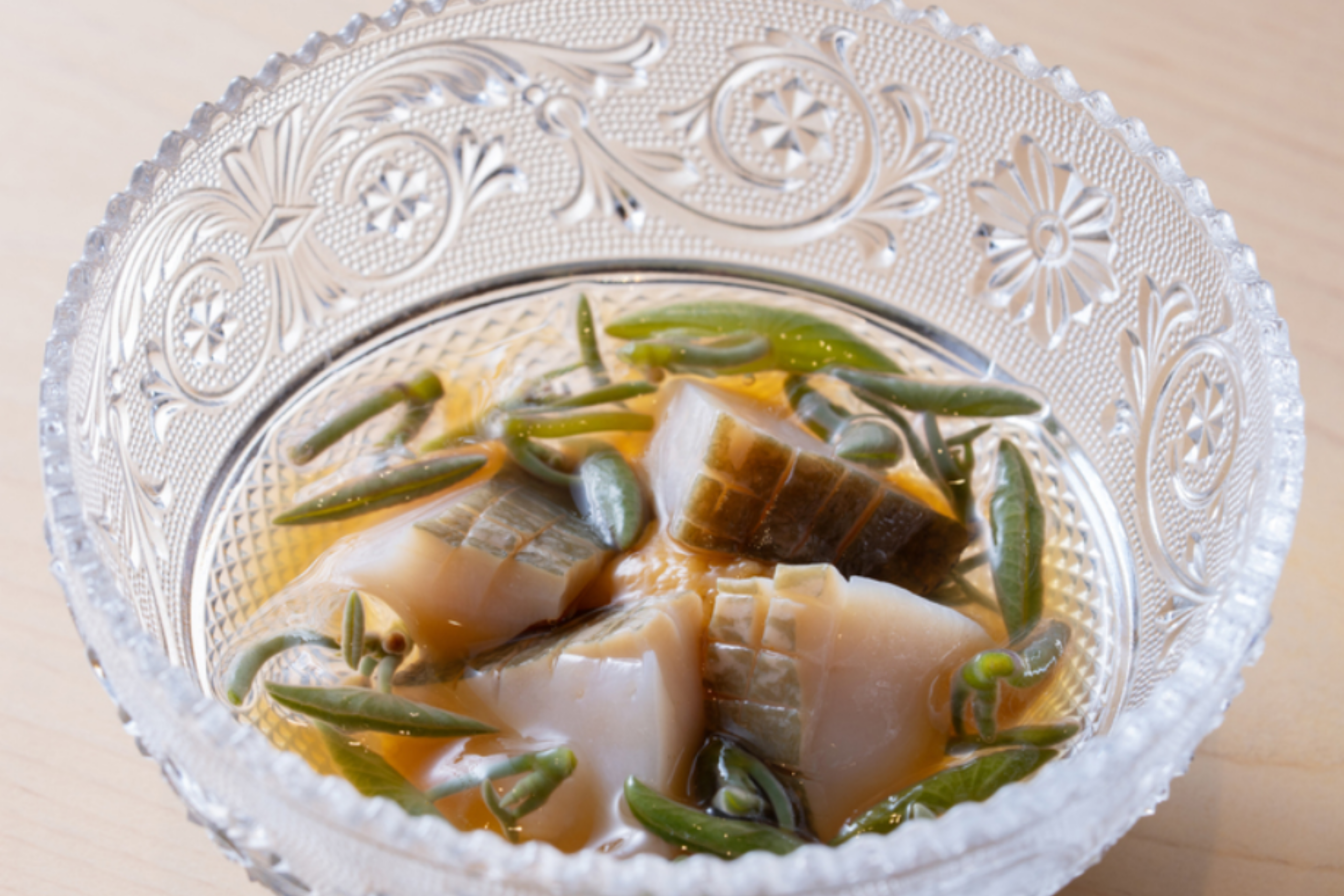 เพราะเชฟ Mitani ไม่ได้เสิร์ฟแค่ซูชิ แต่เขาสร้างสรรค์คอร์สอาหารที่ดึงเอาจิตวิญญาณของวัตถุดิบมาผสมผสานกับเครื่องดื่ม เพื่อนำเสนอความงามแบบ “วาบิซาบิ” ที่เรียบง่ายแต่ลุ่มลึก