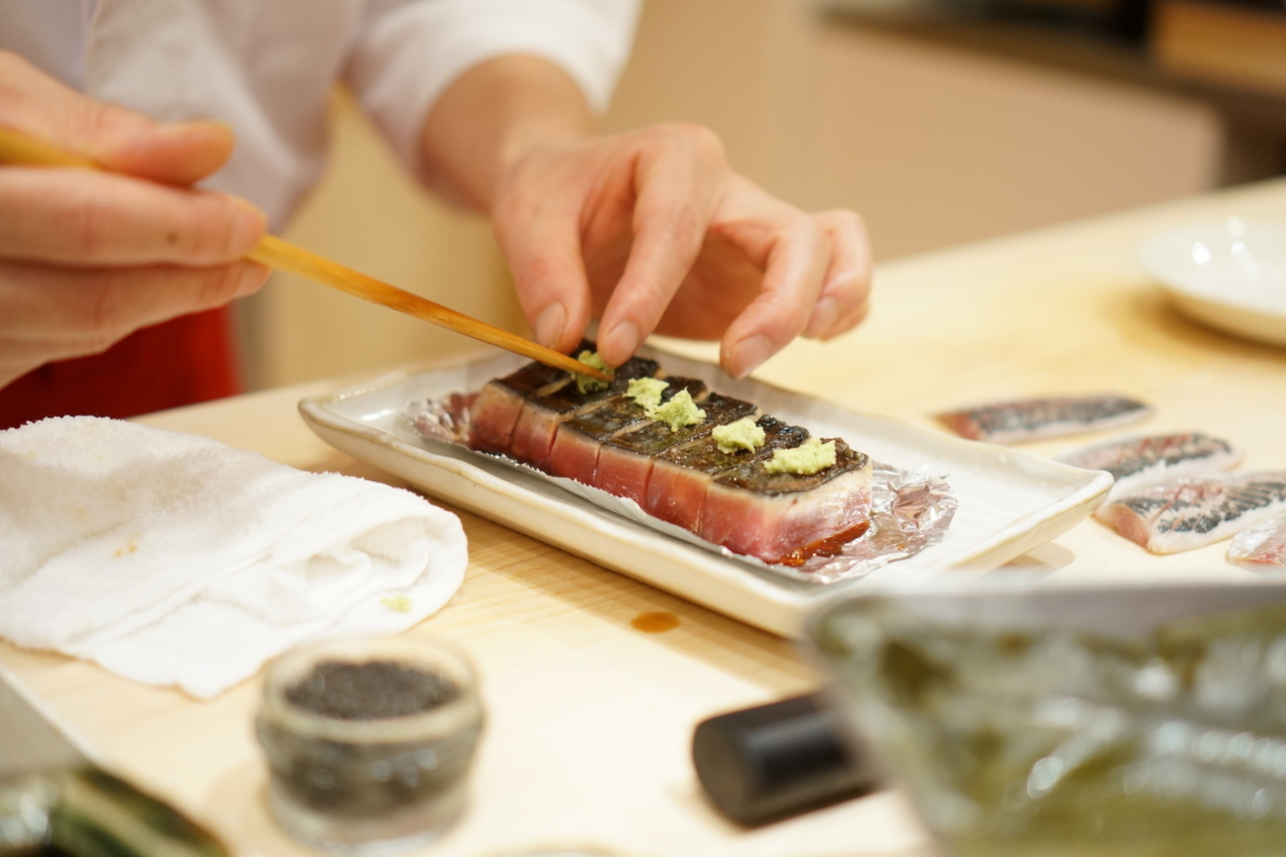 ความพิเศษที่ทำให้ Sugita เป็นมากกว่าร้านซูชิคือ จิตวิญญาณของเชฟ Sugita ที่เคยฝึกฝีมือจาก “Miyakozushi” ร้านระดับตำนานที่ก่อตั้งมาตั้งแต่สมัยเมจิ ทำให้ทุกคำปั้นของเขาเต็มไปด้วยเทคนิคดั้งเดิม ทั้งการดองปลาโคะฮาดะ (Kohada) จากอามาคุสะ และการปรุงรสด้วยน้ำส้มสายชูแดงและโชยุสูตรพิเศษตามแบบฉบับ Edomae