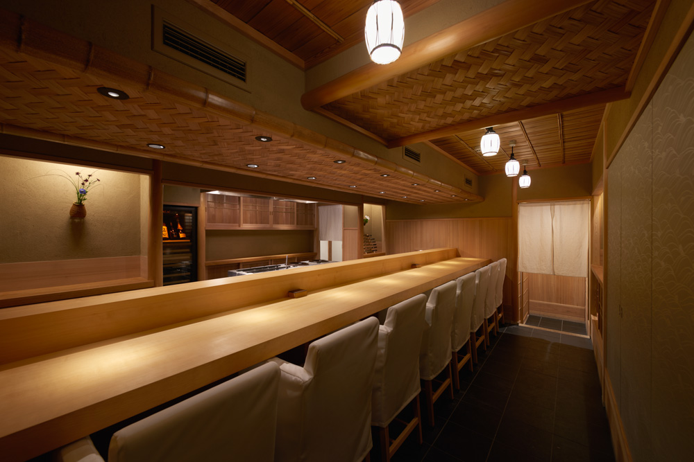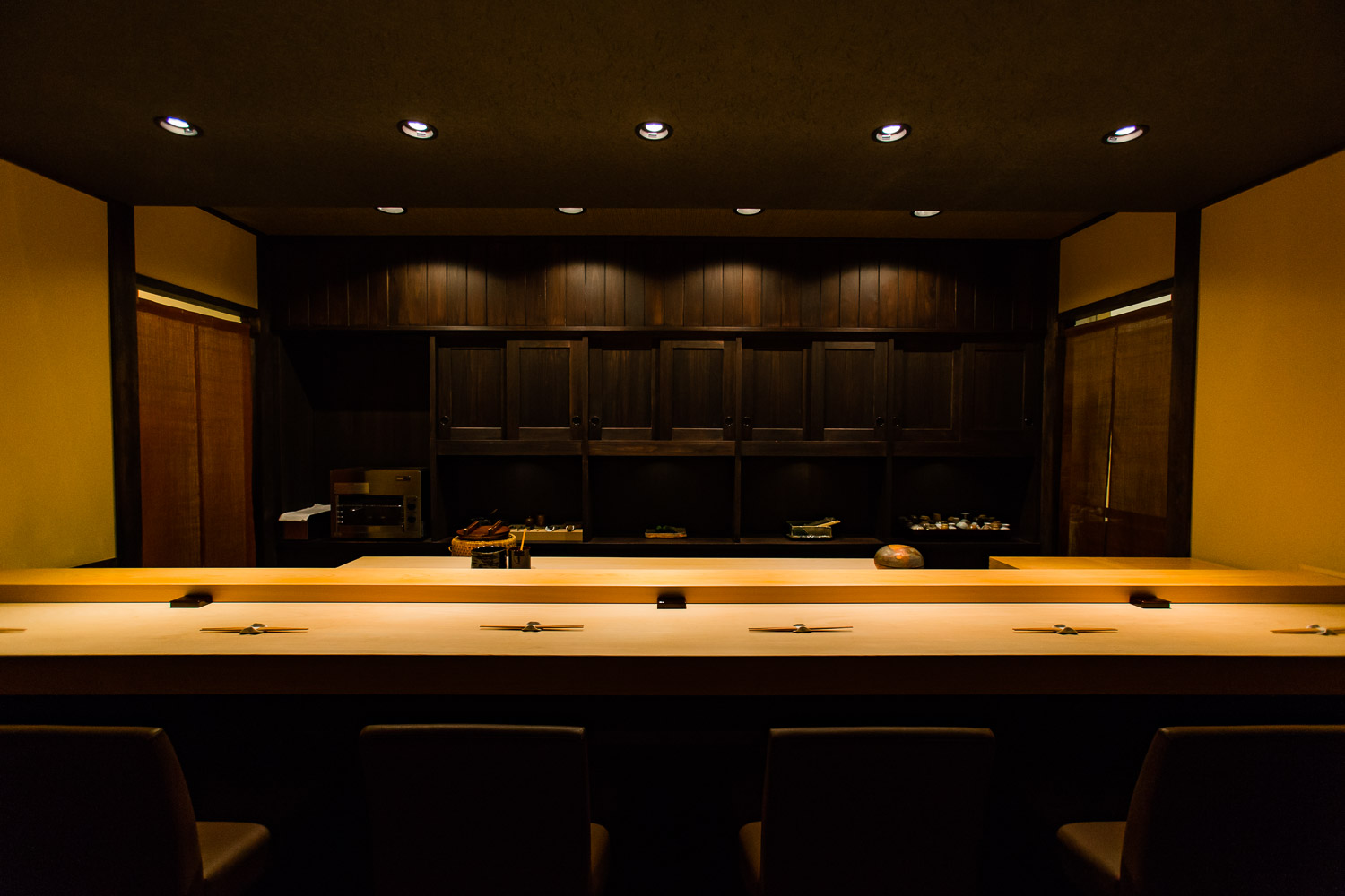 ตัวร้านจะซ่อนตัวอย่างลึกลับใกล้สถานี Yotsuya แต่โดดเด่นด้วยรูปลักษณ์สีดำเรียบหรู เข้าไปภายในร้านมีเพียง 7 ที่นั่งตรงบริเวณเคาน์เตอร์ไม้ไซเปรสรูปตัว L เท่านั้น เพื่อให้ความรู้สึกพิเศษเเละเป็นส่วนตัว