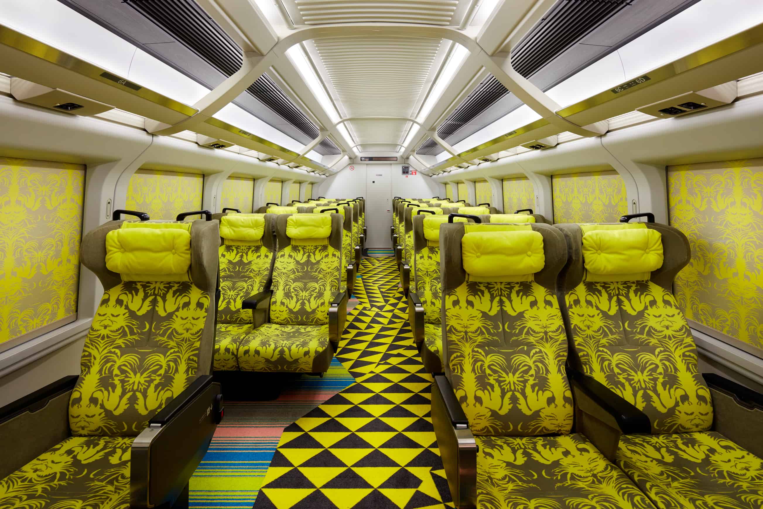 ส่วนตู้โดยสารแบบสำรองที่นั่งล่วงหน้าจะเป็นแบบโซฟาสีเหลืองสดใส รูปทรงและสีสันเหมือนงานศิลปะชิ้นหนึ่ง ทุกสิ่งทุกอย่างบนรถไฟต่างมีสตอรี่ที่ต้องลองไปใช้ใจดู และยังมีความพิเศษตรงที่มีห้องสำหรับเด็ก ทำให้เด็กๆ ได้สัมผัสกับสิ่งที่เรียกว่า “ศิลปะ” ได้อย่างสนุกสนาน ส่วนผู้ใหญ่ก็สามารถนั่งชมทิวทัศน์อันสวยงามผ่านหน้าต่างบานใหญ่ ระหว่างสถานีเอ็ตจิโกะ-ยุซาวะ (Echigo-Yuzawa Station) กับสถานีนีงาตะ (Niigata Station) ได้