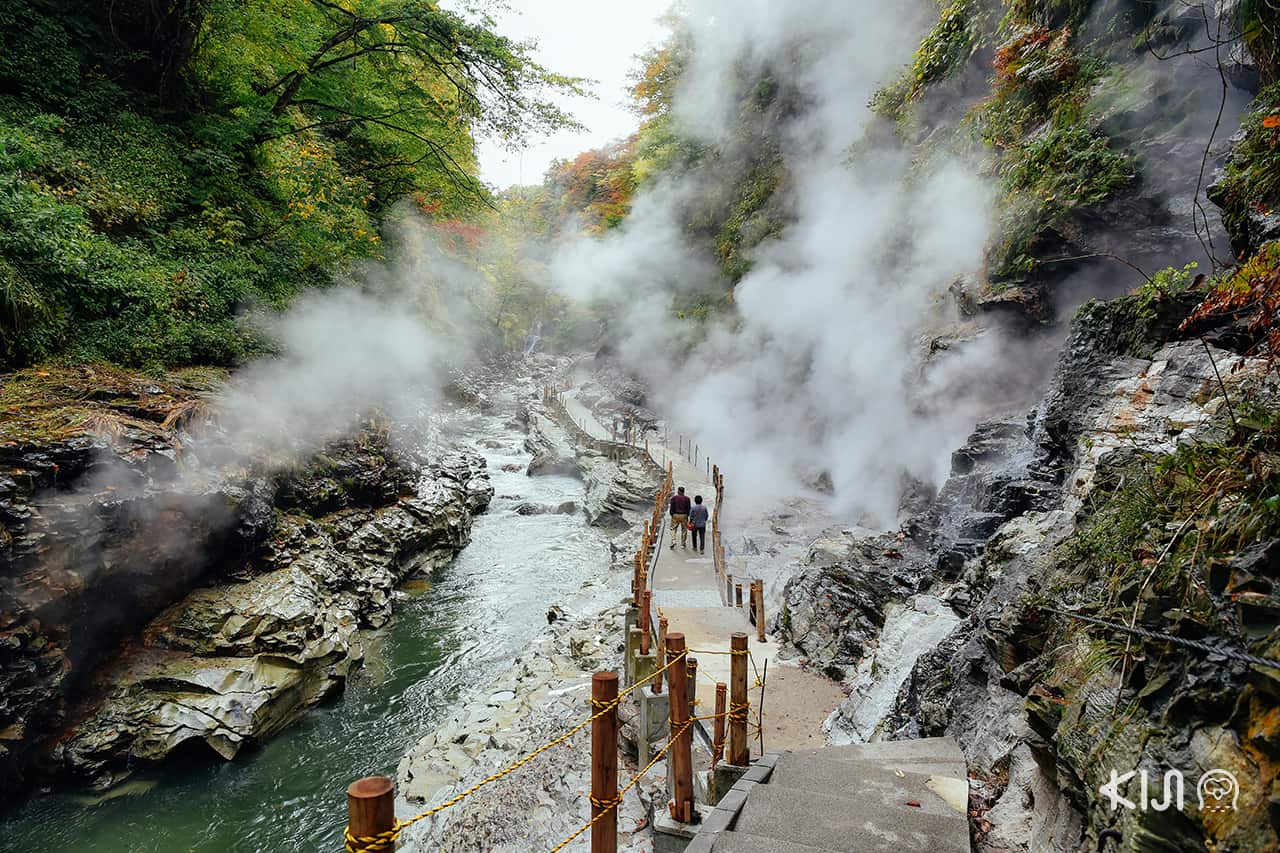 ยุซาวะ (Yuzawa) เป็นเมืองทางตอนใต้สุดของจังหวัดอาคิตะ ที่สามารถเดินทางมาด้วยรถไฟ JR มีสถานที่ท่องเที่ยวชื่อดังคือหุบเขาโอยาสุ (Oyasu Valley : 小安峡) ซึ่งมีแหล่งน้ำพุร้อนธรรมชาติที่ผุดขึ้นมาจนเกิดเป็นไอร้อนพวยพุ่งปกคลุมหน้าผาที่ขนาบทั้งสองด้าน โดยเฉพาะในฤดูใบไม้ร่วงก็จะยิ่งสวยเป็นพิเศษ เพราะป่าไม้โดยรอบก็จะเปลี่ยนเป็นสีส้มแดง
