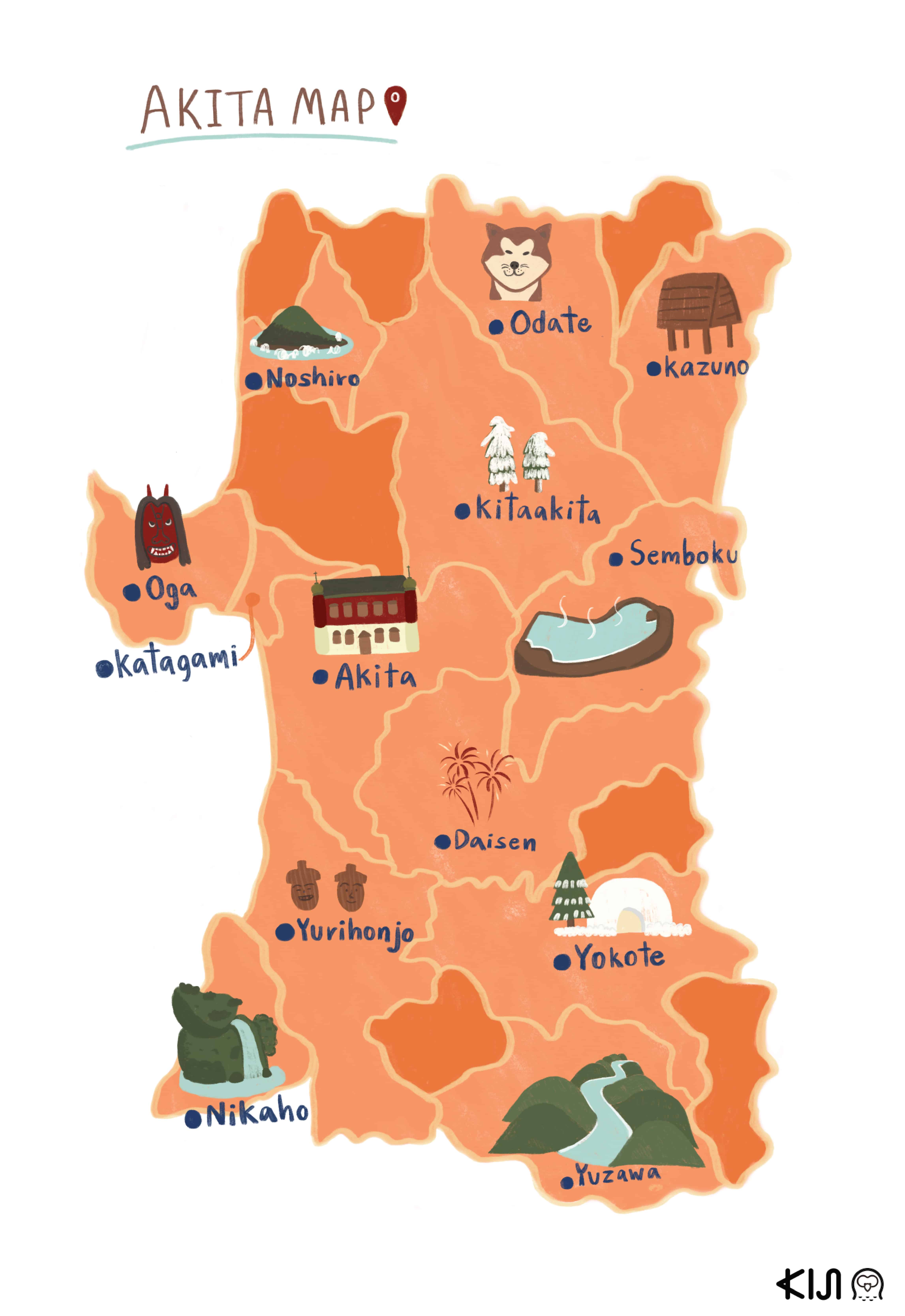 จังหวัด อาคิตะ (Akita : 秋田) ซึ่งอยู่เกือบเหนือสุดของเกาะฮอนชู (เป็นรองแค่อาโอโมริ) นับว่าเป็นอีกหนึ่งจังหวัดที่ได้รับความนิยมจากนักท่อง เที่ยว ต่างชาติมากขึ้นเรื่อยๆ ถ้ามองกลับไปหลายสิบปี จังหวัดอาคิตะนั้นแทบจะไม่มีใครไปเที่ยว เพราะจะเดินทางจากโตเกียวก็ไกลแสนไกล อีกทั้งอากาศหนาวเย็นตลอดทั้งปี แต่ทุกวันนี้มีรถไฟอาคิตะชินคันเซ็น (Akita Shinkansen) วิ่งตรงจากโตเกียวในระยะเวลาไม่ถึง 4 ชั่วโมง อีกทั้งการคมนาคมภายในจังหวัดก็สะดวกมากยิ่งขึ้น นี่ก็คงเป็นเวลาอันดีที่จะเก็บข้อมูลก่อนจัดทริปอาคิตะ ซึ่งเราได้รวบรวมสถานที่ท่องเที่ยวเด่นๆ ในอาคิตะแบ่งให้ดูง่ายๆ ตามแต่ละเมือง