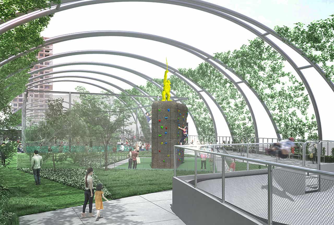 บริเวณที่ติดตั้ง: เหนือกำแพงหินในสวนสาธารณะบนชั้นดาดฟ้า