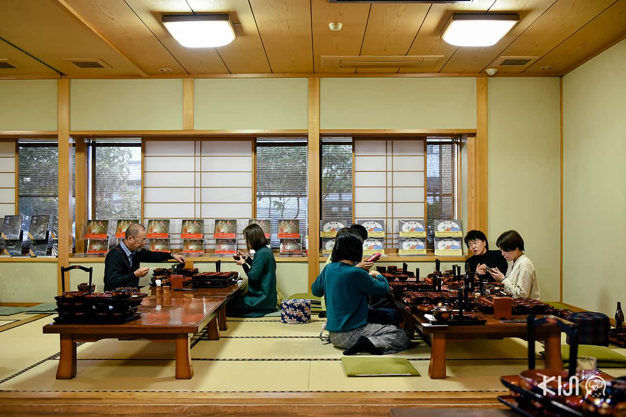 ส่วนตัวเราเลือกกินที่ร้าน Bashokan สาขาหน้าสถานี Hiraizumi เนื่องจากมีธุระแถวนั้นพอดี ที่ร้านนี้จะเสิร์ฟโซบะมาให้ถาดละ 12 ชาม เราสามารถกินได้เรื่อยๆ และพนักงานจะคอยเติมจนกว่าเราจะปิดฝาชาม ซึ่งมีความหมายว่าเราอิ่มแล้วนั่นเอง