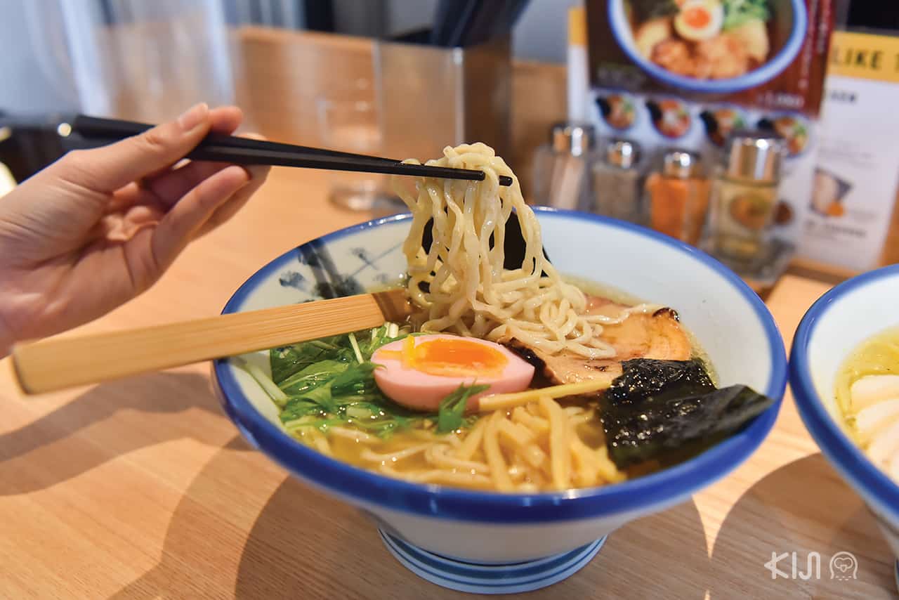 ราเมนของ Afuri สามารถเลือกเส้นได้ 2 แบบ คือเส้นนวดมือ (Temomi) หรือเส้นบุก (Konnyaku) เมนูซิกเนเจอร์ของร้านนี้จะมีเนื้อสัตว์คือหมูชาชู ใครที่ไม่ชอบเนื้อหมูมันๆ สามารถเปลี่ยนเป็นอกไก่ได้เช่นกัน