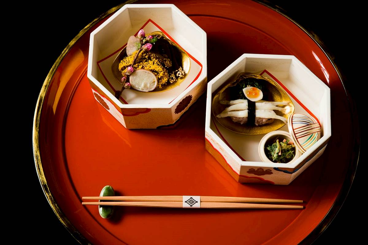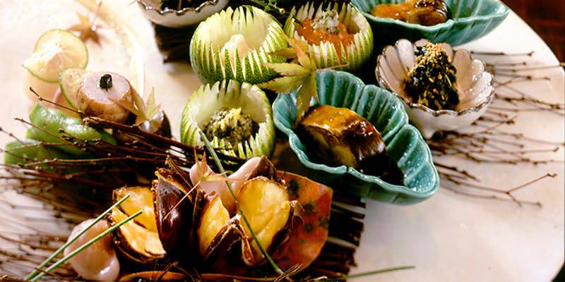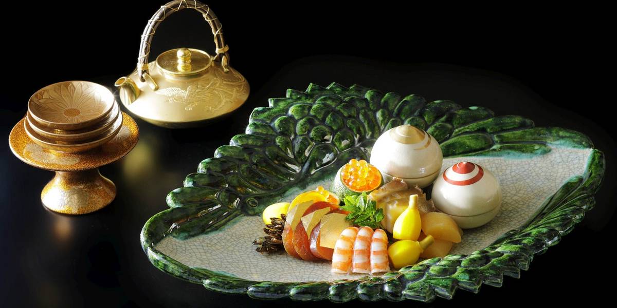อาหารในคอร์สไคเซกิของร้าน Kitcho Arashiyama Honten ที่จัดเรียงมาอย่างสวยงาม ภาพ: restaurant.ikyu.com