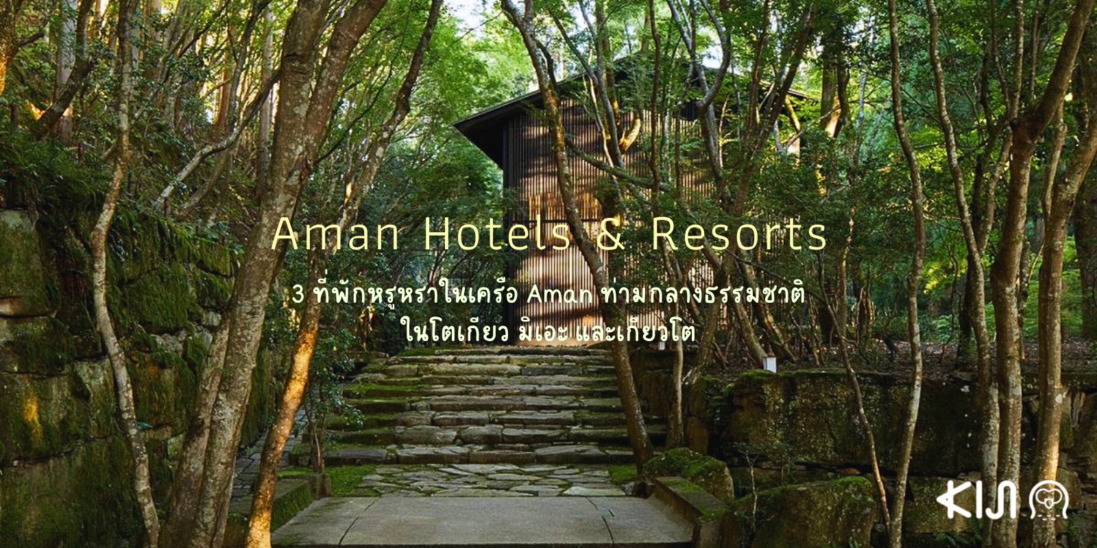 Aman คือแบรนด์ ที่พัก ระดับโลกที่มีโรงแรมและรีสอร์ทสุดหรูหราท่ามกลางธรรมชาติ พร้อมกับกิจกรรมหลากหลาย 3 แห่งใน 3 จังหวัดทั่วญี่ปุ่น ชื่นชมความอุดมสมบูรณ์ของป่าโอเทมาจิ (Otemachi Forest) ได้ที่ Aman Tokyo เยียวยาจิตใจด้วยความเขียวขจีของอุทยานแห่งชาติอิเสะชิมะ (Ise-Shima National Park) และความสวยงามของอ่าวอาโกะ (Ago Bay) ที่ Amanemu พักผ่อนภายในสวนป่าติดเชิงเขาที่เต็มไปด้วยต้นเมเปิลสีเขียวและเสียงคลื่นกระทบฝั่งแม่น้ําที่ Aman Kyoto