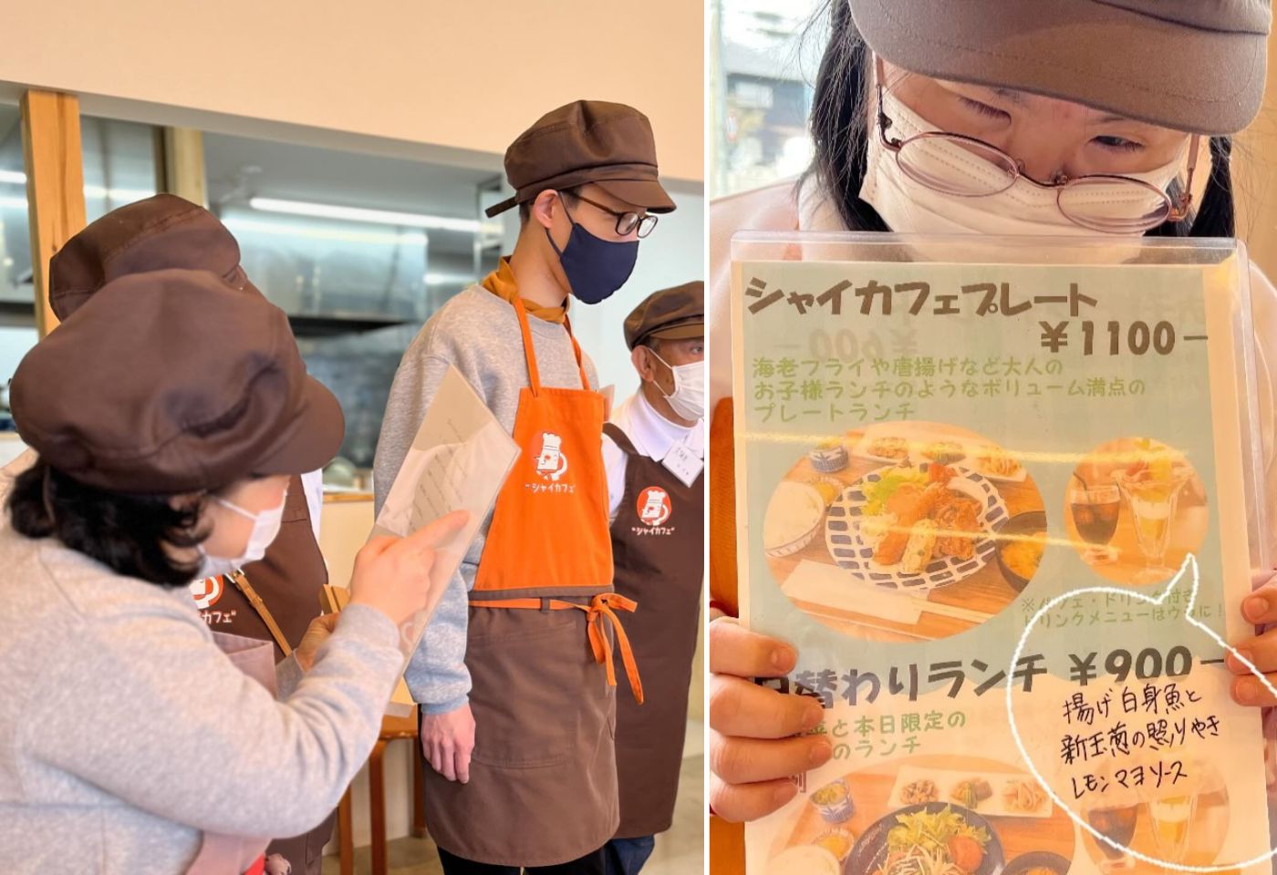 ภายในร้านเฟอร์นิเจอร์ต่างๆ ล้วนทำจากไม้ เเละมีกระจกบานใหญ่เพื่อให้แสงแดดธรรมชาติสามารถส่องเข้ามาถึง ซึ่งนอกจากบรรยากาศร้านที่ชวนอบอุ่นเเล้ว เมื่อเราก้าวเข้าไปในร้าน เราจะสัมผัสได้ถึงความเขินอายไม่กล้าเข้ามาทักทายต้อนรับลูกค้าของพนักงานทุกคน ก็เพราะว่าร้านแห่งนี้เปิดโอกาสในการทำงานให้กับกลุ่มผู้ป่วยดาวน์ซินโดรมเเละออทิสติก