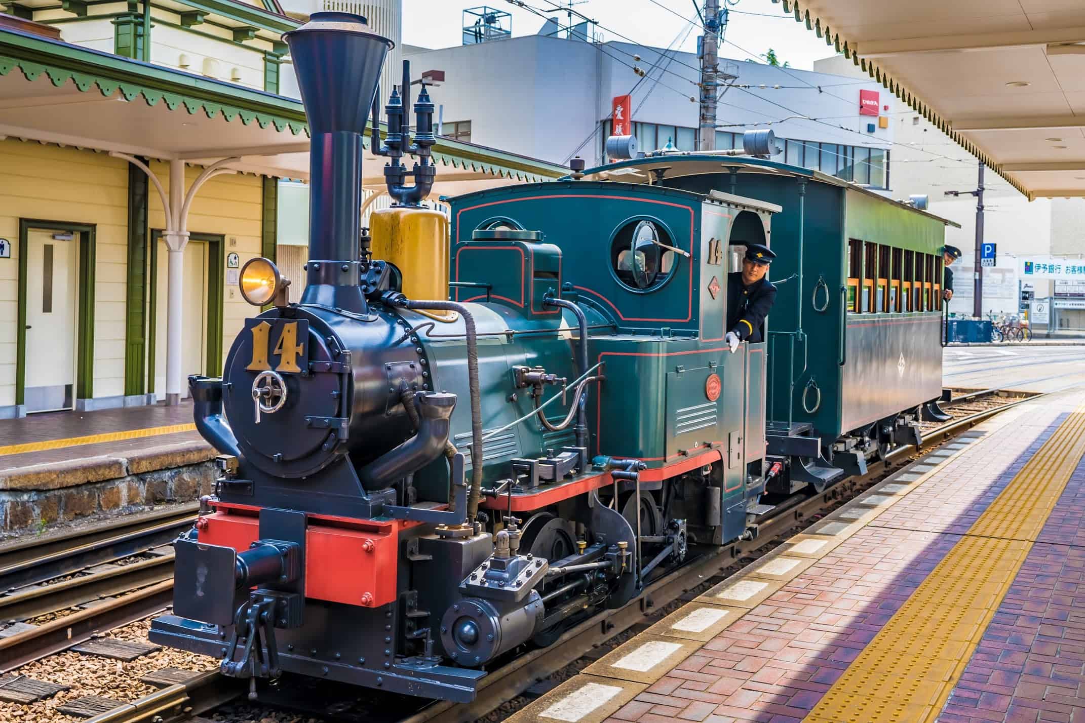รถรางขบวนนี้มีชื่อว่าบ๊ตจัง (Botchan Train) เป็นรถรางสายสำคัญที่พลาดไม่ได้เลยถ้าหากมาเที่ยวเมืองมัตสึยามะ (Matsuyama) จังหวัดเอฮิเมะ เพราะบ๊ตจังเนี่ย เป็นรถรางท่องเที่ยวที่จำลองมาจากรถจักรไอน้ำที่สามารถพาเราไปยังโดโกะออนเซ็น (Dogo Onsen) ซึ่งเป็นหนึ่งในบ่อออนเซ็นที่เก่าแก่ที่สุดในญี่ปุ่นได้อีกด้วย นอกจากนี้บ๊ตจังยังมีพิพิธภัณฑ์ (Botchan Train Museum) เป็นของตัวเองด้วยนะ อีกทั้งในเมืองมัตสึยามะ ยังมีที่อื่นๆ น่าสนใจอีกด้วย เช่น ปราสาทมัตสึยามะ (Matsuyama Castle) สวนสัตว์โทเบะ (Tobe Zoological Park) สวนโดโกะ (Dogo Park) ฯลฯ