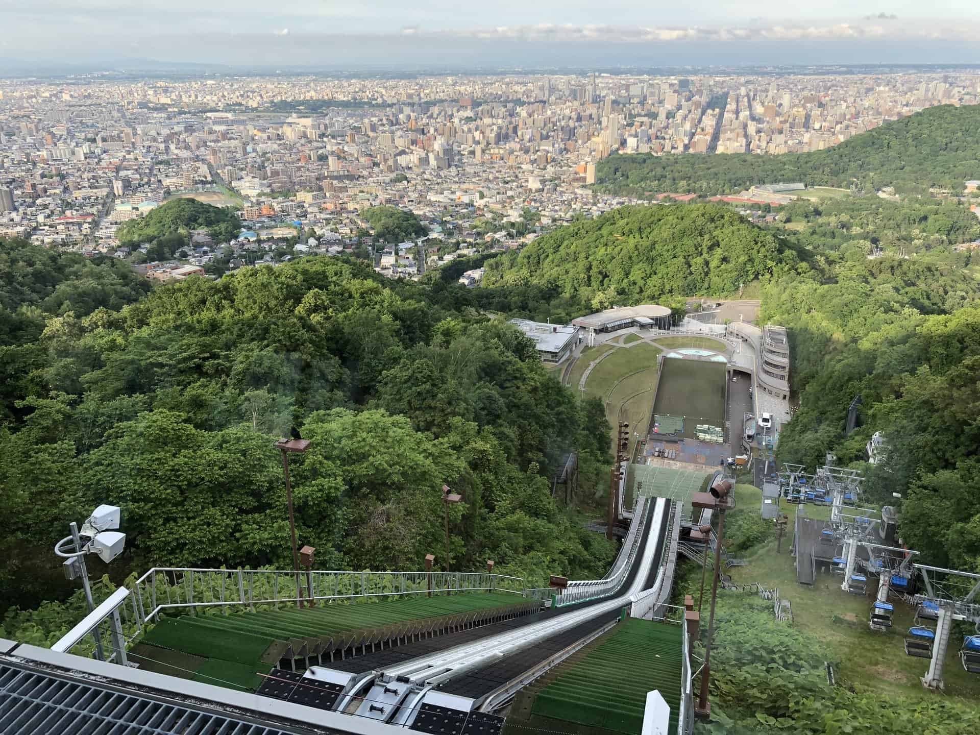 เราไปต่อกันที่จุดชมวิวอีกแห่งซึ่งอยู่บนภูเขา ซัปโปโรไม่ได้มีแต่ Mt.Moiwa แต่ยังมี Mt.Okura ด้วย ซึ่งเป็นจุดชมวิวสุดตระการตาอีกแห่งในชื่อว่า “Okurayama Observatory” เป็นส่วนหนึ่งของ Okurayama Ski Jump Stadium สนามสกีที่เคยใช้แข่งขัน Winter Olympics เมื่อปี 1972 เป็นอีกหนึ่งที่วิวสวยไม่แพ้ที่ไหนและคนไม่พลุกพล่านเท่า Mt.Moiwa