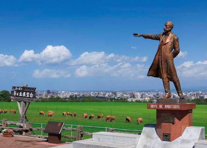 ใช่แล้ว รูปปั้นเท่ๆ ในชุดสูทยืนชี้นิ้วที่เราเห็นในสื่อโปรโมทซัปโปโรอยู่บ่อยๆ คือ Mr.William Clark หนึ่งในผู้ก่อตั้งมหาวิทยาลัยฮอกไกโดนั่นเอง และเป็นผู้มอบวลีคลาสสิกที่ยังคงถูกจดจำอยู่ในหมู่ชาวเมืองซัปโปโรจนถึงทุกวันนี้ “Boys, be ambitious!” (สลักอยู่บนแท่นรูปปั้นด้วย)