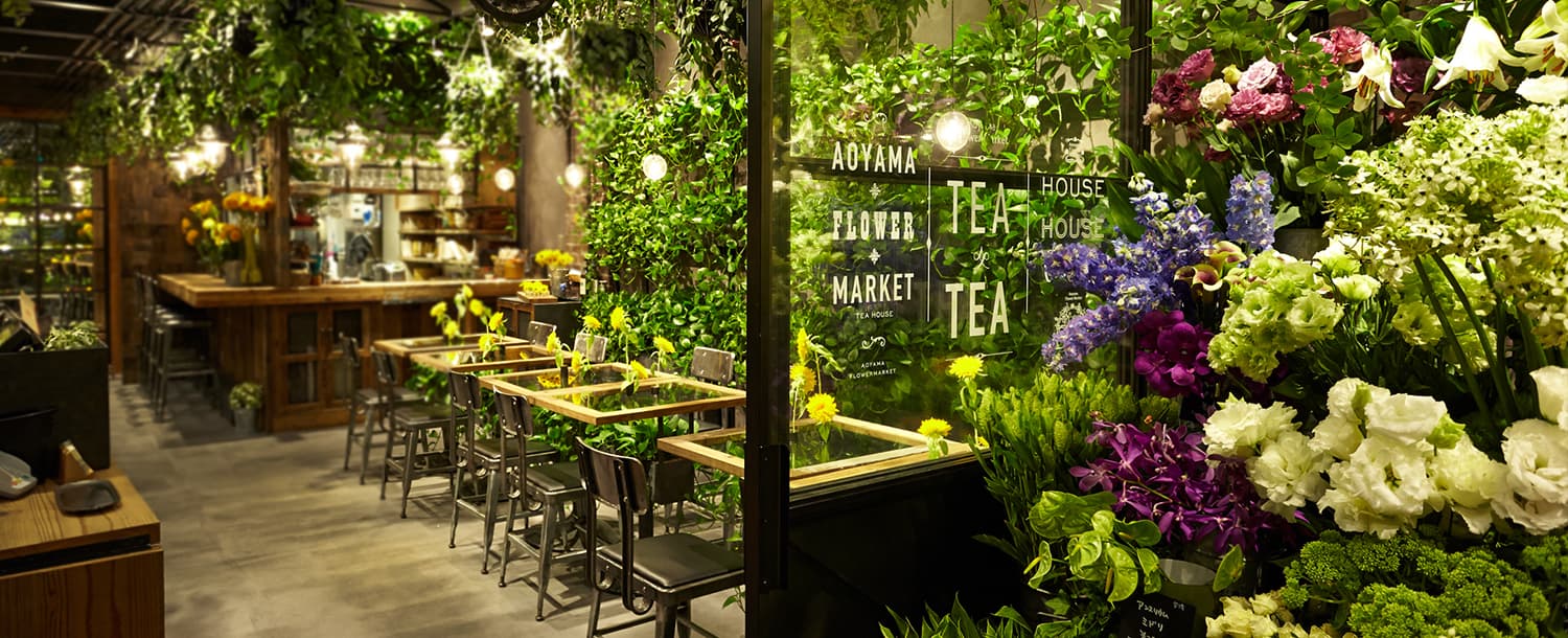 ตามชื่อเลย นี่คือสถานที่ที่นำดอกไม้และชามาผสมกันได้อย่างลงตั๊วลงตัว ภายใต้การตกแต่งแบบเรือนกระจก (Greenhouse) เดิมที Aoyama Flower Market เป็นร้านขายเฉพาะดอกไม้คุณภาพพรีเมียมที่มีสาขามากมายทั่วประเทศ (ประสบความสำเร็จจนขยายร้านไปต่างประเทศแล้วด้วย) มีเฉพาะสาขา Aoyama ที่ถูกทำเป็นคาเฟ่เพียงแห่งเดียวใช้ชื่อว่า “Tea House”