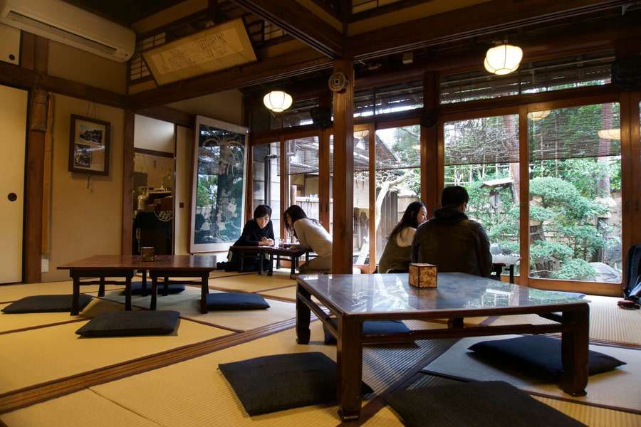คาเฟ่นี้ทำมาจากบ้านญี่ปุ่นแบบโบราณ มีสวนญี่ปุ่นเล็กๆ ตัวบ้านทำด้วยไม้ เราต้องนั่งลงบนเสื่อทาทามิ ใช่แล้ว นี่คือคาเฟ่แห่งการ “จิบชาญี่ปุ่น” นั่นเองครับ ชาเขียวขมๆ พร้อมขนมญี่ปุ่นหวานๆ กินอย่างใดอย่างหนึ่งอาจไม่ค่อยเท่าไร แต่เมื่อกินคู่กันกลับปล่อยรสชาติที่กลมกล่อมสุดๆ