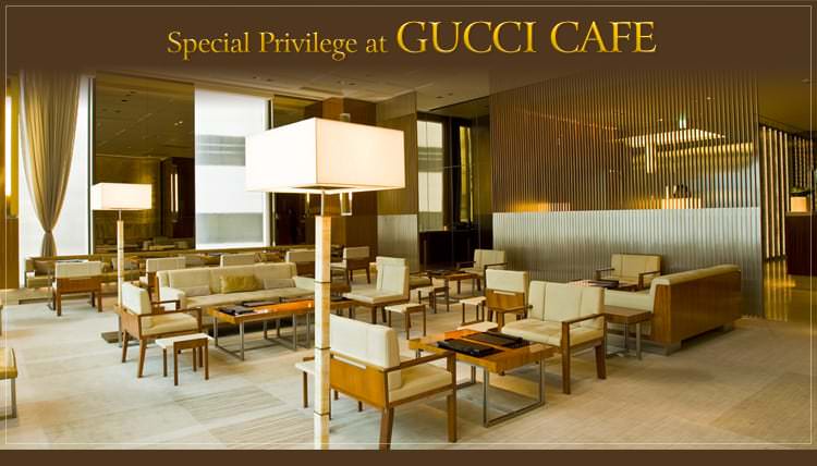 Gucci Café เปิดบริการทั้งกลางวันและกลางคืน เสิร์ฟตั้งแต่เครื่องดื่ม ของทานเล่น ของหวาน ไปจนถึงเมนูหนักๆ (เมนูไม่เยอะมาก) และยังมีช็อกโกแลตเป็นของตัวเองซึ่งแต่ละอันจะถูกประทับตราโลโก้แบรนด์เอาไว้ด้วย ทั้งนี้โลโก้แบรนด์ยังถูกพบเห็นได้ทั่วไปในร้าน ไม่ว่าจะเป็นเมนู ขอบโต๊ะ พรมทางเดิน ฯลฯ