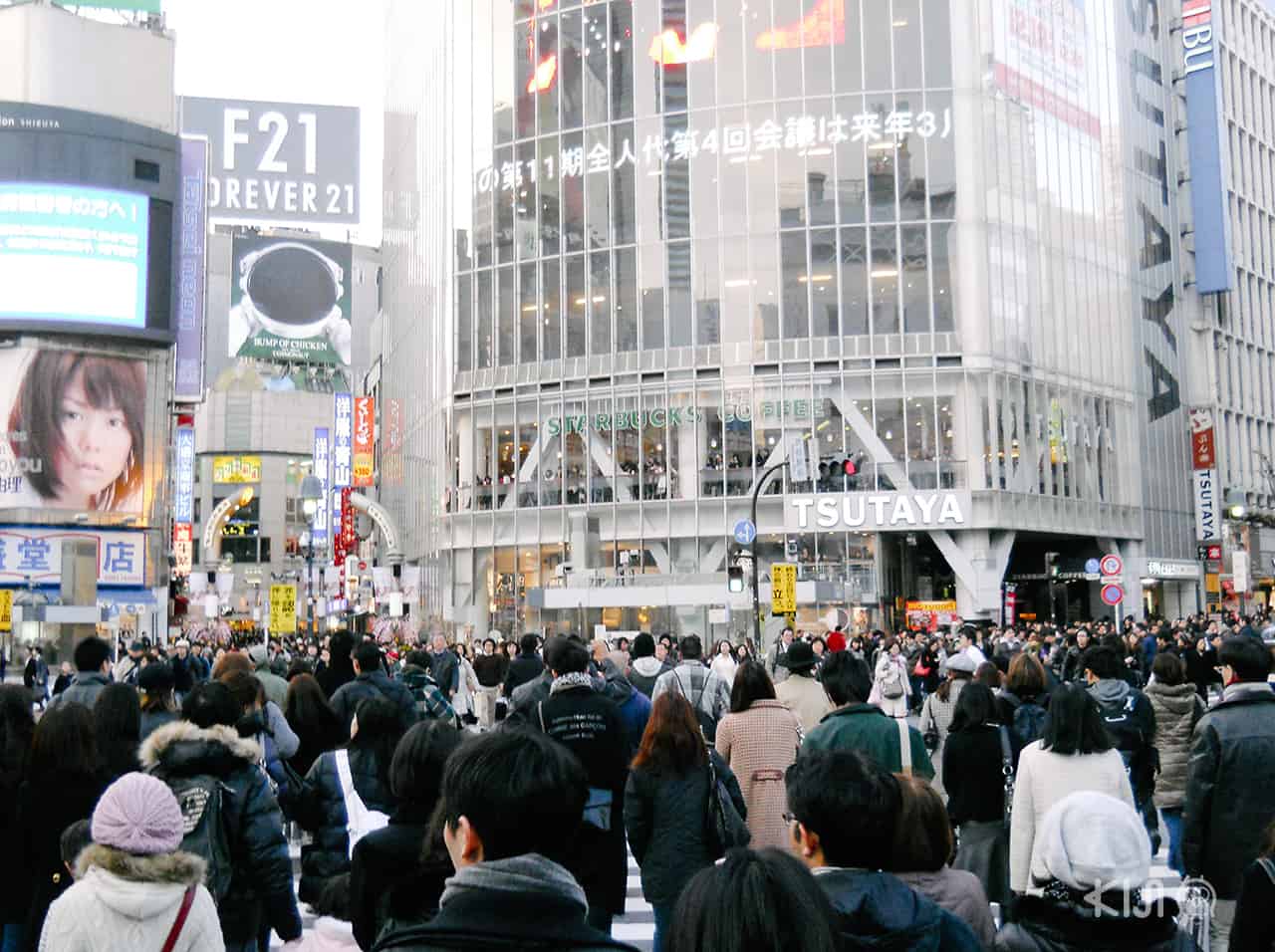 ผู้คนมากมายรอเดินข้ามตามมุมต่างๆ ของถนน เมื่อไฟเขียวขึ้นให้คนข้ามและรถหยุด ผู้คนจากทุกทิศก็กรูเข้าหากัน บ้างคือชาวโตเกียวแท้ๆ บ้างควบจักรยานคู่ใจฝ่าฝูงชนอย่างมีสไตล์ บ้างคือนักท่องเที่ยวผู้มาเยือนโตเกียวครั้งแรกในชีวิตยกกล้องชูไม้ชูมืออย่างตื่นเต้นและสนุกสนาน มีผู้คนมากมายจากทั่วโลกและความรู้สึกอันหลากหลายเกิดขึ้นในการข้ามถนนเพียงครั้งเดียว ยังไงนี่ก็เป็นภาพโตเกียวสุดคลาสสิกอยู่วันยังค่ำ เราว่าสมควรอย่างยิ่งที่จะจองตำแหน่งที่นั่งติดริมหน้าต่างในร้านสตาบัคส์สาขาแยกชิบูย่าเพื่อเก็บภาพความทรงจำเบื้องล่างนี้
