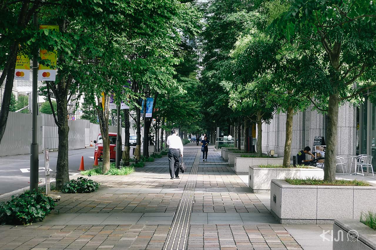 จุดยุทธศาสตร์ของมันคือตั้งอยู่ใจกลางแหล่งอาคารออฟฟิศสำคัญ ที่มีบริษัทชั้นนำหลายแห่งอยู่ จึงไม่แปลกที่จะเห็นคนทำงานทั้งชาวญี่ปุ่นและชาวต่างชาติในชุดสูทเนี้ยบเดินผ่านไปมา บ้างจะเห็นรถรับส่งสำหรับผู้บริหารระดับสูง บ้างคือขบวนรถของเหล่าบุคคลสำคัญต่างชาติที่มาเยือนญี่ปุ่น เป็นอีกสไตล์ของวิวที่มีออร่าความเอาจริงเอาจังเอาการเอางาน