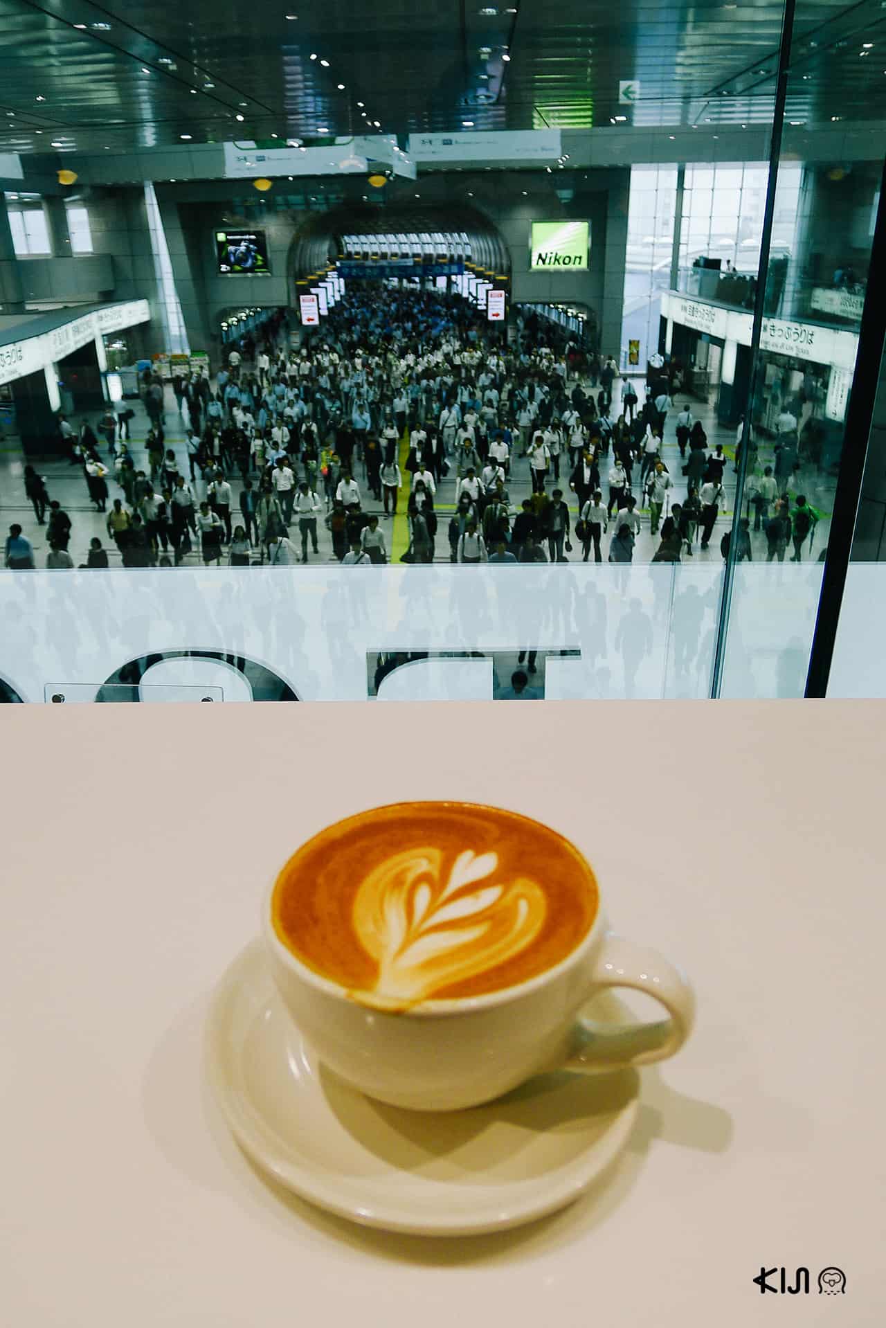 สาขา Shinagawa Station นอกจากร้านกาแฟอิสระ (Specialty Coffee) แบรนด์นี้จะเติบโตอย่างสวยงามในญี่ปุ่นพร้อมรสชาติกาแฟกลมกล่อมสุดพรีเมียมแล้ว สาขานี้ยังมอบวิว “คลื่นมวลมหามนุษยชาติ” ในแบบที่สตาบัคส์แยกชิบูย่าต้องยอมใจ เนื่องจากร้านนี้ตั้งอยู่ที่ชั้น 2 ของห้างสรรพสินค้า Atré ด้านในร้านมีที่นั่งเคาน์เตอร์บาร์ที่เมื่อมองลงมาจะเห็นคลื่นมวลชนชาวโตเกียวที่เดินผ่านสถานีนี้แบบเต็มๆ ก็ดูเหมือนจะเป็นวิวที่พอให้รู้สึกถึงความคึกคักของเมืองโตเกียวได้เป็นอย่างดี
