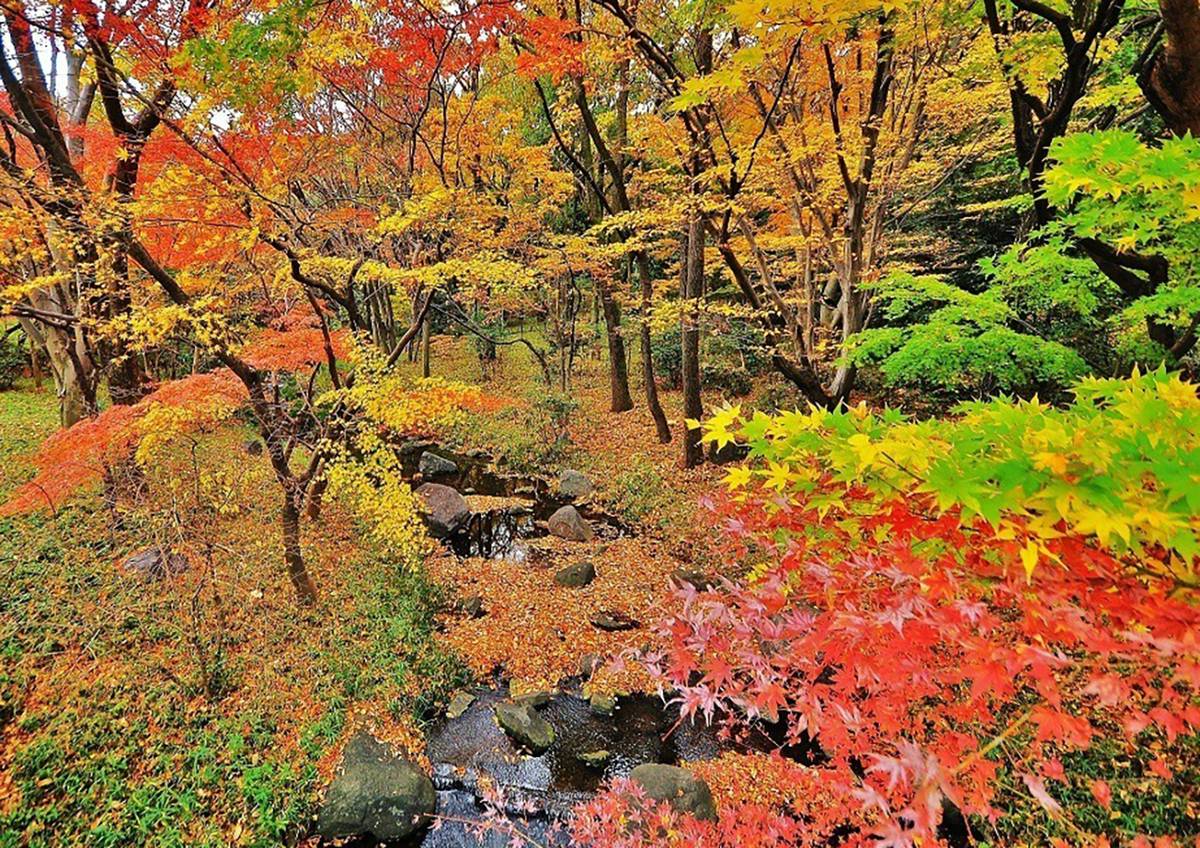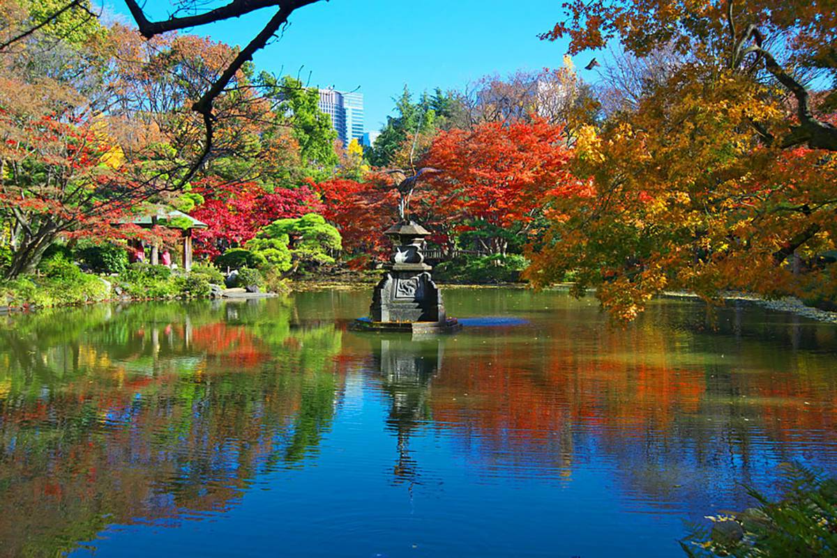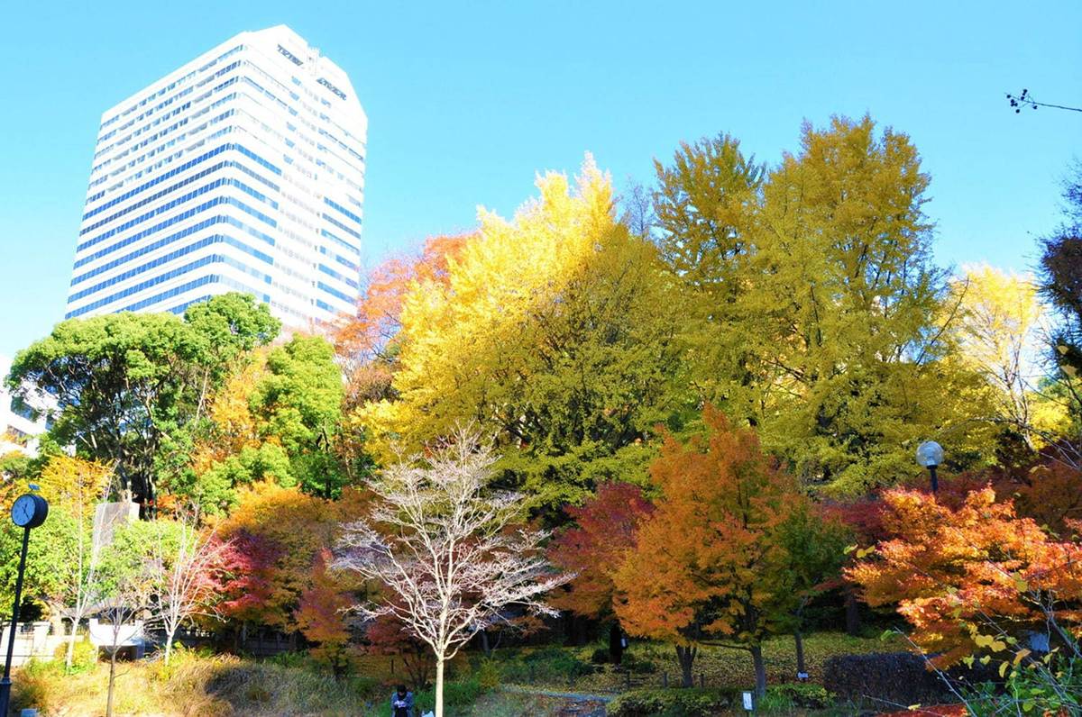 สวนขนาดเล็กที่อิงแอบอยู่ระหว่างตึกสูงใจกลางเมือง แม้ว่าจะมีขนาดพื้นที่ไม่กว้างขวางมากนัก แต่เมื่อเข้าสู่ฤดูกาลใบไม้ร่วงบรรดาต้นเมเปิ้ลที่ถูกย้อมเป็นสีแดงสดและแปะก๊วยสีเหลืองทองก็ช่วยสร้างทิวทัศน์ที่สวยงามจนลืมความวุ่นวายในเมืองไปชั่วขณะ เป็นอีกหนึ่ง จุดชมใบไม้เปลี่ยนสี ลับๆ ใน โตเกียว ที่ผู้คนสามารถเดินทางมาชมได้ตลอดทั้งวัน