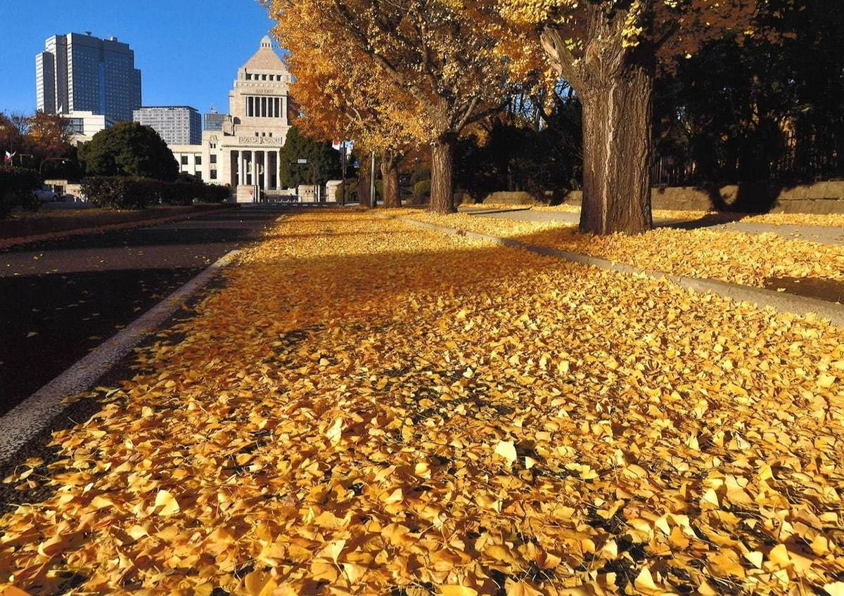 บริเวณหน้ารัฐสภาก็ถือเป็นอีกจุดหนึ่งที่สามารถชมใบไม้เปลี่ยนสีได้เช่นกัน แม้ว่าอาจจะไม่สามารถหาที่นั่งชมได้เหมือนกับในสวนสาธารณะ แต่ขอบอกเลยว่าความสวยงามของต้นแปะก๊วยสีเหลืองทองที่เรียงรายอย่างเป็นระเบียบข้างทาง เมื่อรวมเข้ากับความเคร่งขรึมของรัฐสภาที่ตั้งตระหง่านอยู่ตรงกลางก็กลายเป็นทิวทัศน์งดงามไม่ซ้ำใครไปอีกแบบ หากใครมองหาโลเคชั่นที่แตกต่างจากที่อื่นบอกเลยว่าไม่ควรพลาด