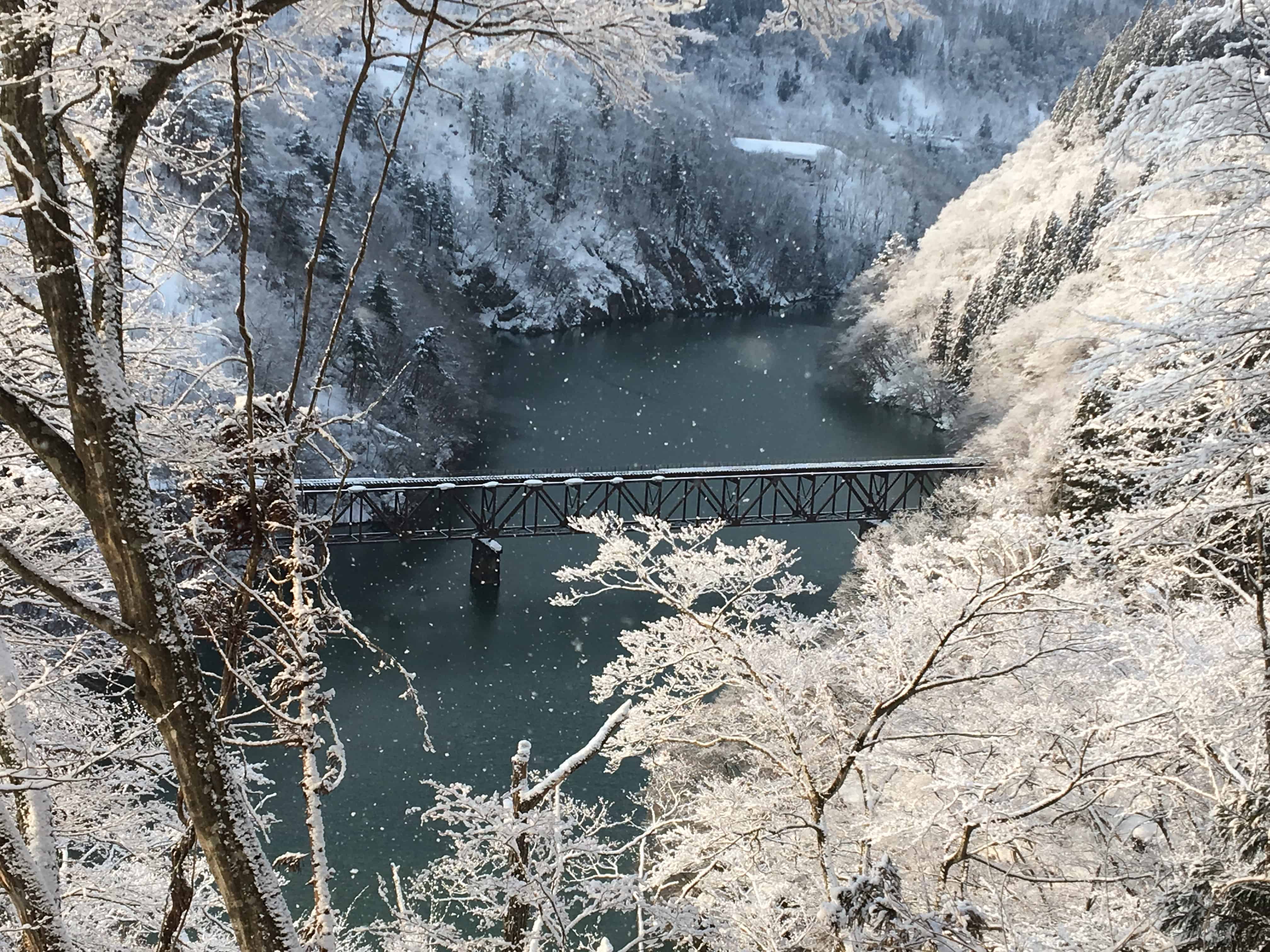 สะพานรถไฟทรงโค้งยาว 174 เมตรที่ทอดข้ามแม่น้ำทาดามิ (Tadami River) ในจังหวัดฟุกุชิมะ ในวันที่ฟ้าโปร่งจะเห็นภาพของสะพานและต้นไม้สีขาวที่เรียงรายสองฝั่งน้ำ สะท้อนอยู่เหนือผิวน้ำเหมือนกระจกขุ่นบานใหญ่ รายล้อมด้วยบรรยากาศที่หิมะปกคลุมจนสวยงามดุจภาพวาดสีน้ำมัน จึงมิใช่เรื่องแปลกที่ช่างภาพจากทั่วโลกเดินทางมาถ่ายรูปวิวสะพานนี้ในช่วงฤดูหนาว