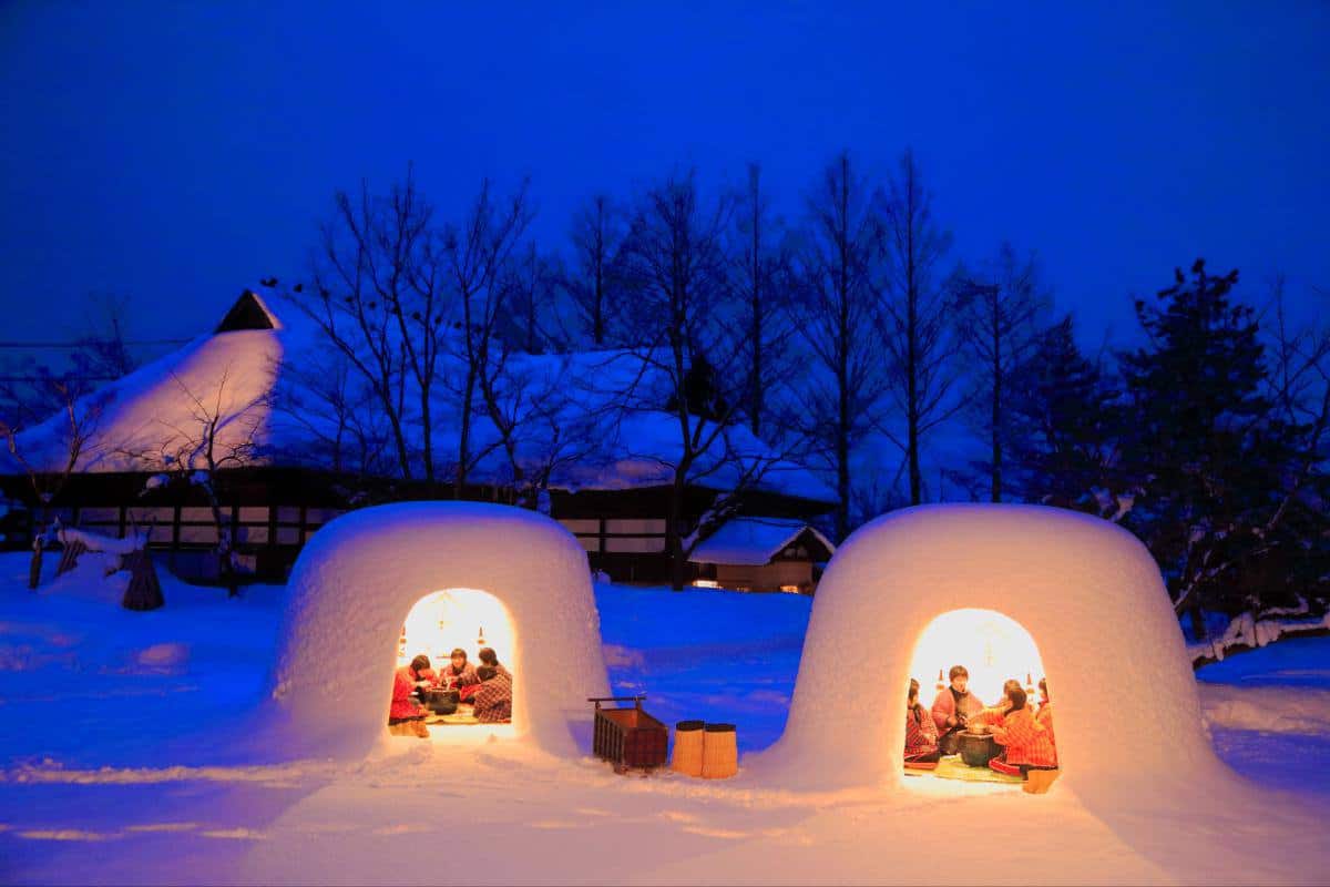 พูดถึงชื่อ “คามาคุระ” เดี๋ยวจะเข้าใจกันไปว่าเป็นเมืองที่มีพระพุทธรูปองค์ใหญ่ใกล้ๆ โตเกียว แต่คามาคุระที่จะแนะนำครั้งนี้เป็นชื่อของเทศกาลหิมะซึ่งมีตัวชูโรงเป็นกระท่อมหิมะลักษณะคล้ายๆ อิกลูของชาวเอสกิโม ผู้ร่วมงานจะเข้าไปนั่งล้อมวงภายในกระท่อมและทำอาหารสไตล์นาเบะเพื่อเติมความอบอุ่นให้ร่างกาย ถือเป็นหนึ่งในเทศกาลฤดูหนาวที่ไม่ควรพลาด