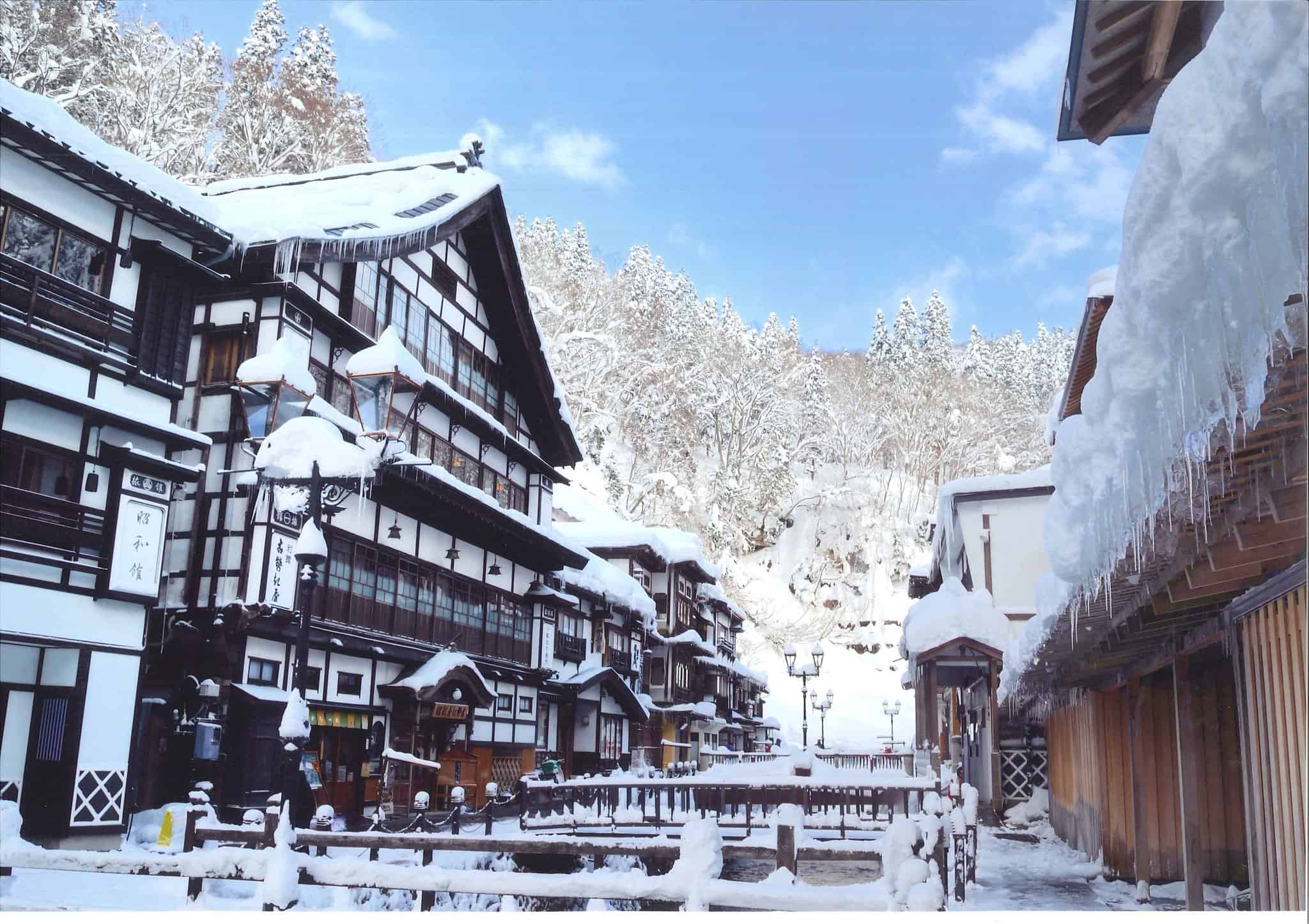 กินซังออนเซ็น เป็นหมู่บ้านบ่อน้ำพุร้อนในจังหวัดยามากาตะที่มีชื่อเสียงมาก เนื่องจากมีโรงแรมสไตล์ย้อนยุคสร้างด้วยไม้จำนวนมากเรียงกันเป็นแนว และมีสะพานข้ามคลองที่มีเสน่ห์เฉพาะตัว จะสวยเป็นพิเศษในช่วงฤดูหนาวที่หิมะกำลังโปรยปรายลงมาหรือทับถมจนเกิดเป็นน้ำแข็งย้อย สถานที่นี้ยังเหมือนกับฉากในเรื่อง Spirited Away ของสตูดิโอจิบลิ (Studio Ghibli) หากแช่บ่อน้ำพุร้อนที่นี่จะช่วยรักษาอาการเจ็บป่วยมากมาย เช่น แผลน้ำร้อนลวก อาการปวดกล้ามเนื้อ ฯลฯ นอกจากนี้ ว่ากันว่าหากดื่มน้ำพุร้อนที่นี่จะช่วยบรรเทาโรคต่างๆ เช่น เบาหวาน ท้องผูกเรื้อรัง นิ่วในถุงน้ำดี ฯลฯ