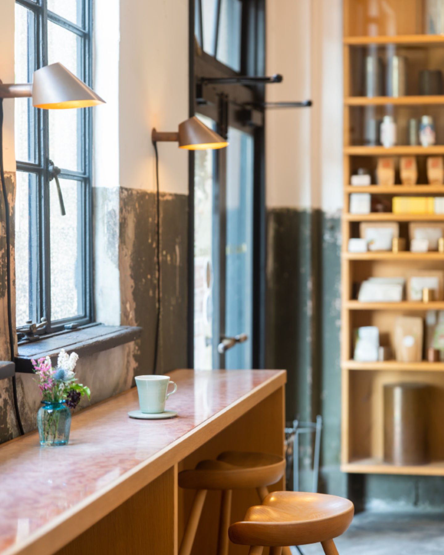 ที่เห็นอยู่บนตามชั้นวางต่างๆ คือชากิ หรือ “อุปกรณ์ชงชา” ที่ล้วนทำด้วยมือ ซึ่งถ้าใครสนใจ ที่ชั้น 2 ของคาเฟ่จะมีร้านค้าย่อมๆ อยู่ สามารถไปเดินชมหรือจะซื้อกลับบ้านได้