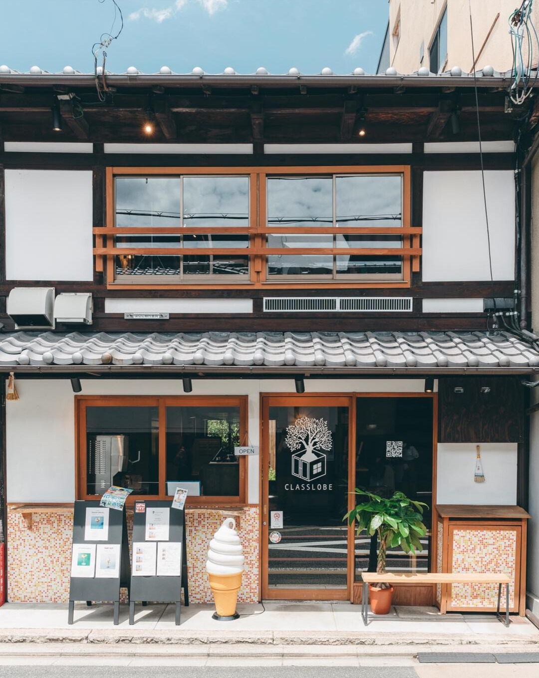 ตรงข้ามกับวัด Bukkoji ยังมีอีกคาเฟ่ชื่อว่า ”CLASSLOBE” ที่ตัวอาคารเองก็ถูกปรับปรุงมาจากทาวน์เฮาส์เกียวโตที่มีอายุมากกว่า 100 ปี ภายในร้านมีบรรยากาศที่เงียบสงบอันเป็นเอกลักษณ์ของบ้านแบบเกียวโตมาชิยะ เเละยังเต็มไปด้วยความเขียวขจีของต้นไม้และแสงอบอุ่นจากพระอาทิตย์ที่ลอดผ่านเข้ามา แถมเพลงที่เปิดเล่นภายในร้านยังเป็นสไตล์ ”lo-fi” ที่ฟังเเล้วยิ่งเพิ่มความรู้สึกผ่อนคลายเข้าไปอีก