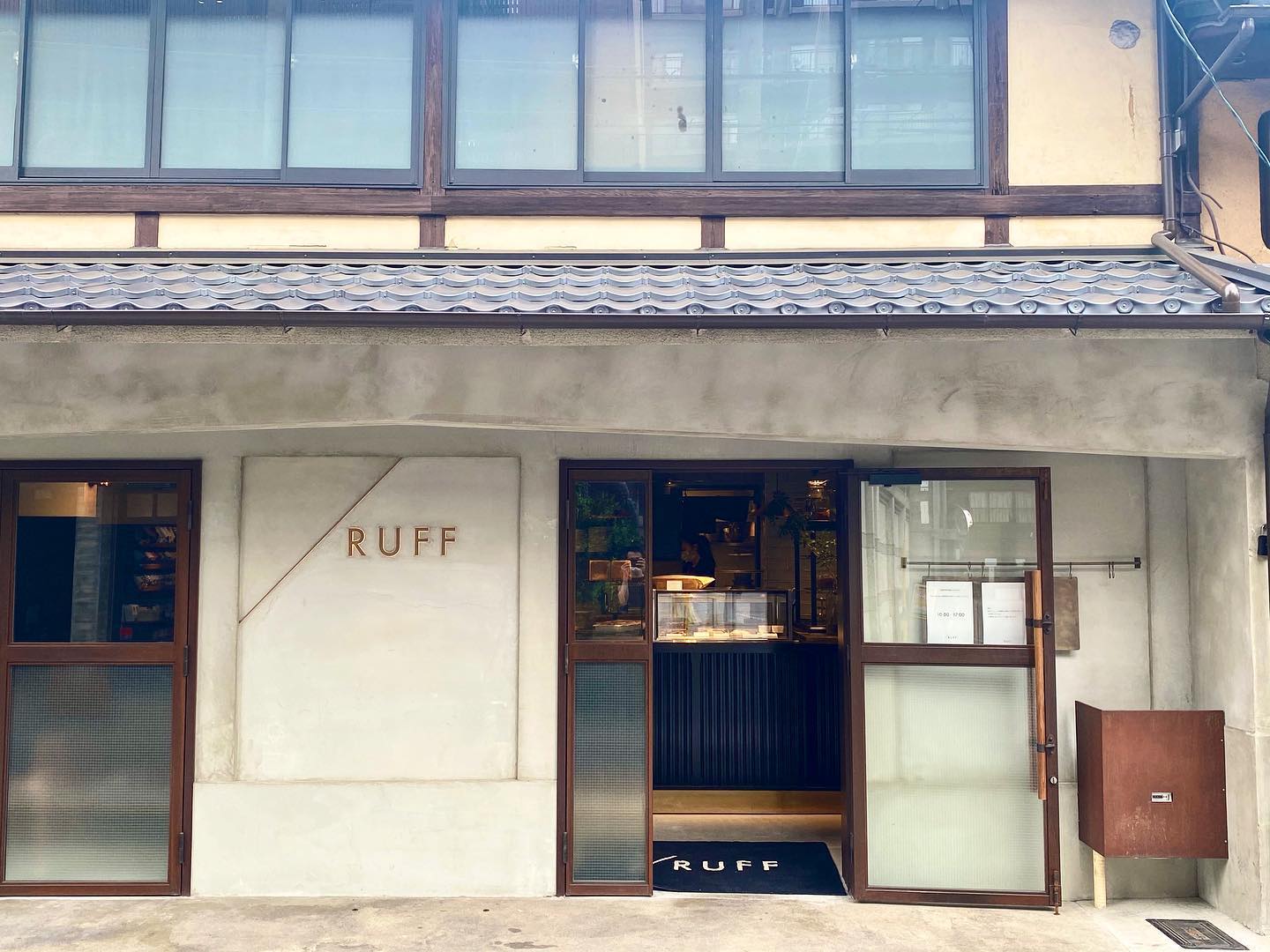 ต่อกันเลยกับคาเฟ่ในระแวกใกล้เคียงกับตลาด Nishiki มีร้านอาหารเเละเบเกอรี่ชื่อว่า “Ruff” อยู่ภายในทาวน์เฮาส์ที่เคยถูกสร้างตั้งแต่สมัยสงครามเเละนำมาปรับปรุงใหม่ การตกแต่งภายนอกที่เรียบง่ายเเละโลโก้ชื่อร้านที่โดดเด่นเตะตาบนผนังสีเทา ยิ่งดึงดูดให้น่าค้นหามากขึ้น