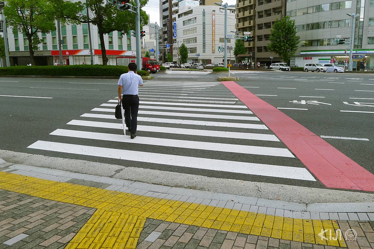 ฟุตปาธน่ะไม่มีปัญหา แต่หลายคนอาจจะกังวลเรื่องการข้ามถนนหนทาง แต่ขอบอกว่าหายห่วงได้เลย เพราะทางม้าลายข้ามถนนในญี่ปุ่น เรียกได้ว่าข้ามได้ง่ายและปลอดภัยอันดับต้นๆ ของโลกแล้ว โดยบริเวณที่เป็นจุดตัดทางข้ามกับถนนจะมีทางม้าลายให้เห็นชัดเจน (ตอนกลางคืนยังเห็นชัด)