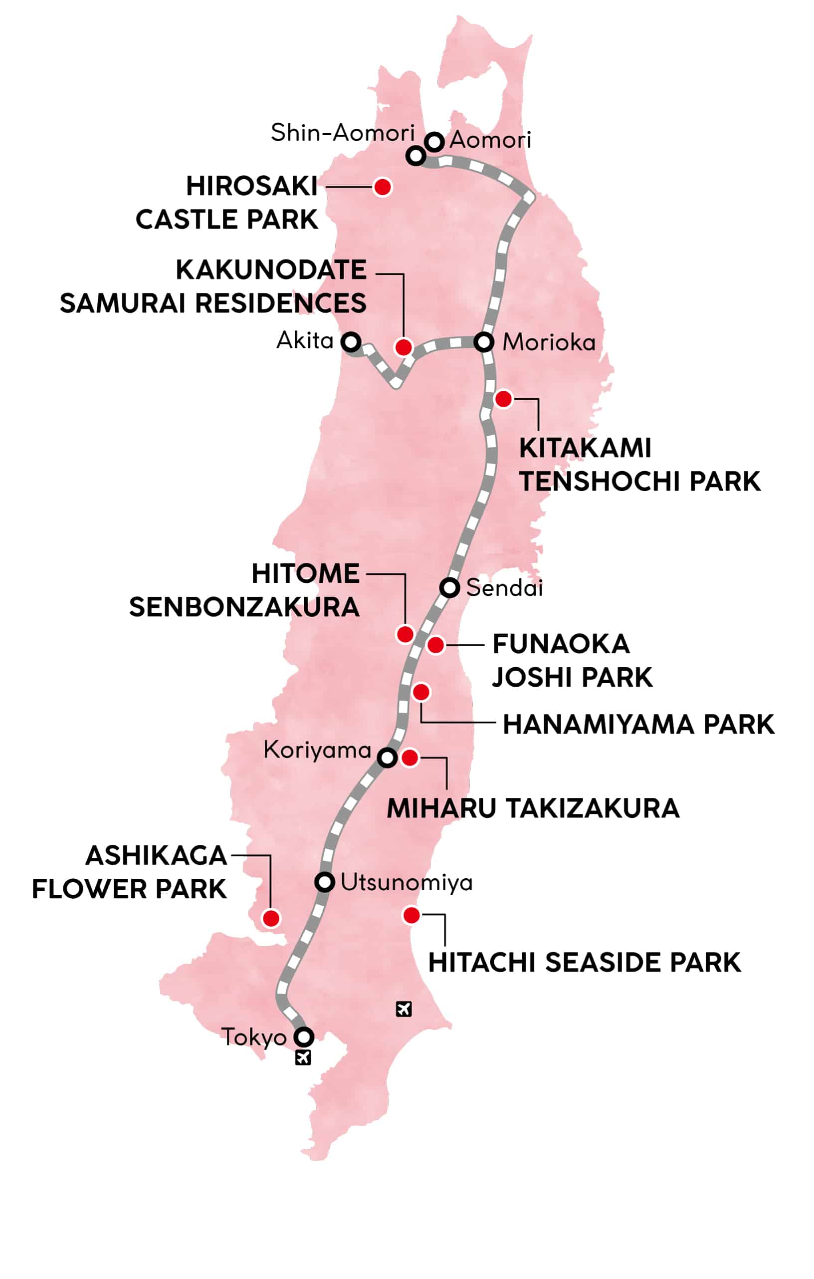 ภูมิภาคโทโฮคุ (Tohoku) คือพื้นที่บริเวณทิศตะวันออกเฉียงเหนือของญี่ปุ่น และด้วยทำเลที่ตั้งนี้เองจึงทำให้ช่วงพีคของฤดูใบไม้ผลิของโทโฮคุนั้นมาช้ากว่าโตเกียว โอซาก้า หรือเกาะคิวชู