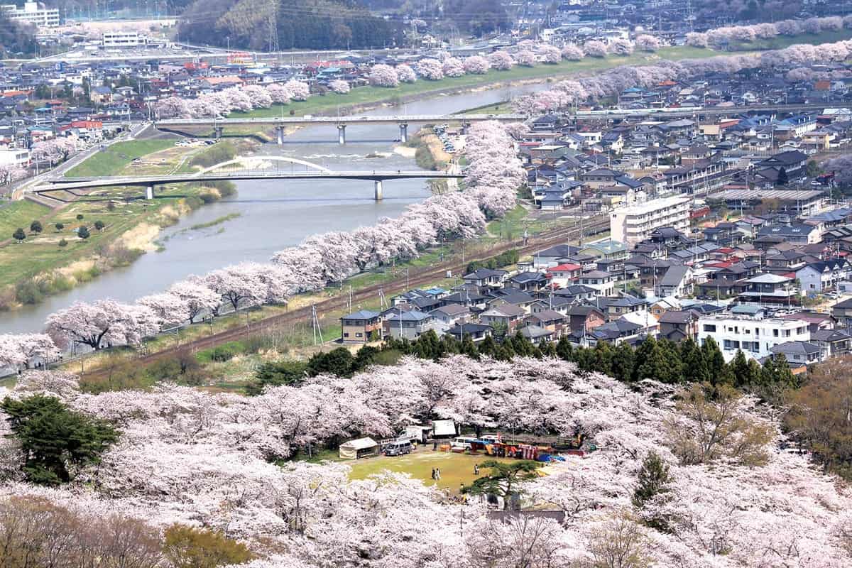 เรายังคงอยู่ในจังหวัดมิยากิ และสถานที่ต่อไปก็คือฮิโตะเมะเซ็มบงซากุระ (Hitome Senbonzakura) อย่าเพิ่งตกใจว่าสถานที่อะไรทำไมชื่อออกเสียงยากขนาดนี้ ความหมายของชื่อนี้คือ “มองเห็นซากุระ 1,000 ต้นเพียงชำเลืองมอง” ซึ่งที่มาของชื่อนั้นก็คือแนวต้นซากุระที่เรียงรายกันกว่า 1,200 ต้นและยาวถึง 8 กิโลเมตรริมแม่น้ำชิโรอิชิทั้งสองฝั่ง เรียกได้ว่ามีต้นซากุระเยอะขนาดนี้ ก็สามารถถ่ายรูปคู่กับต้นซากุระแบบไม่ติดคนอื่นได้อย่างง่ายๆ